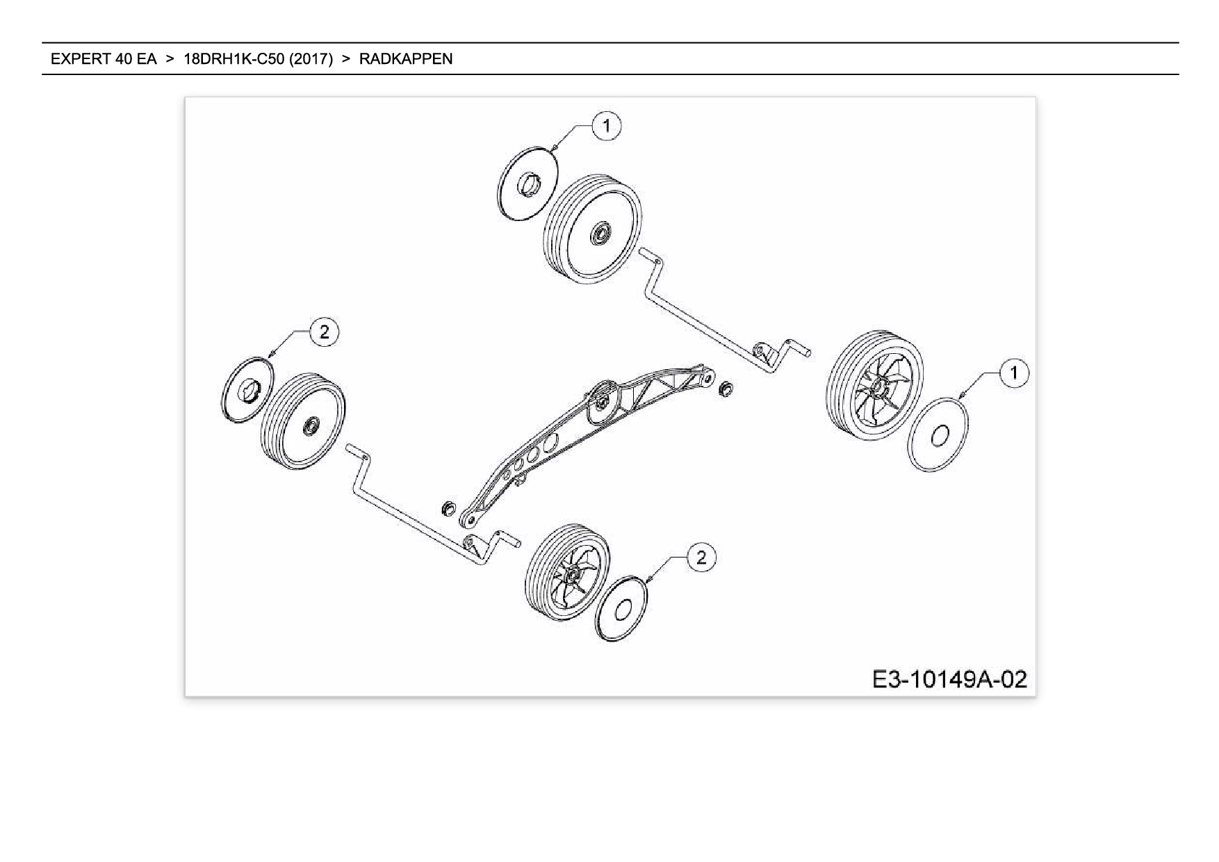 Ersatzteile für Elektromäher mit Antrieb Wolf-Garten Expert EXPERT 40 EA aus der Zeichnung Radkappen: