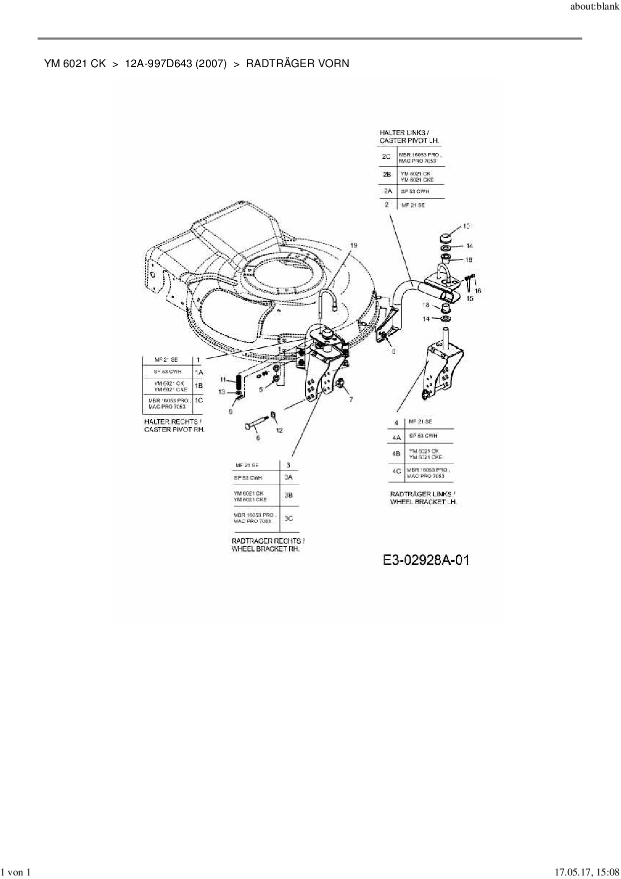 Download Ersatzteil-Zeichnung Yard-Man YM 6021 CK Zeichnung Radträger vorn (PDF-Format)