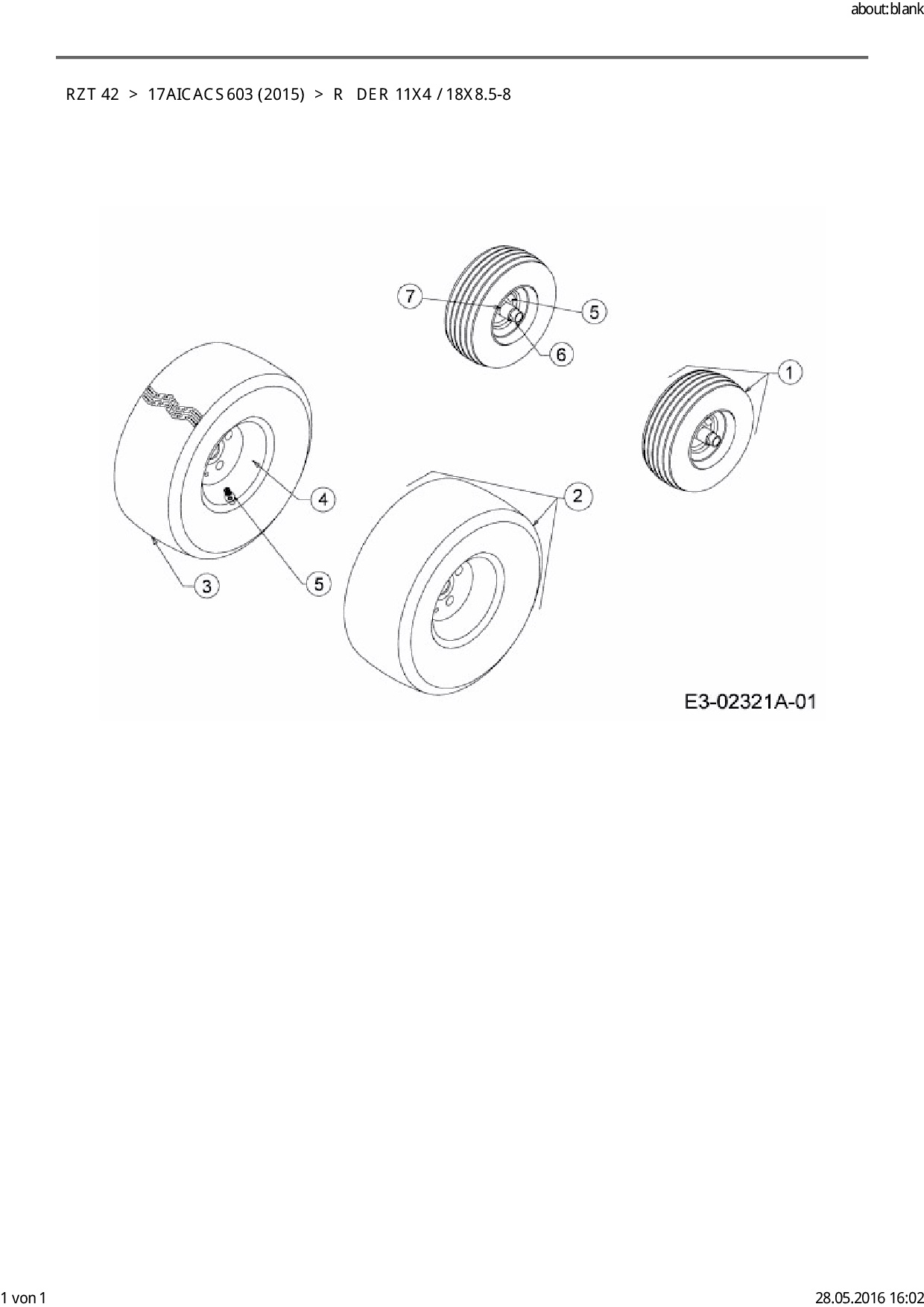 Ersatzteile für Zero Turn Cub Cadet RZT 42 aus der Zeichnung Räder 11x4 / 18x8.5-8: