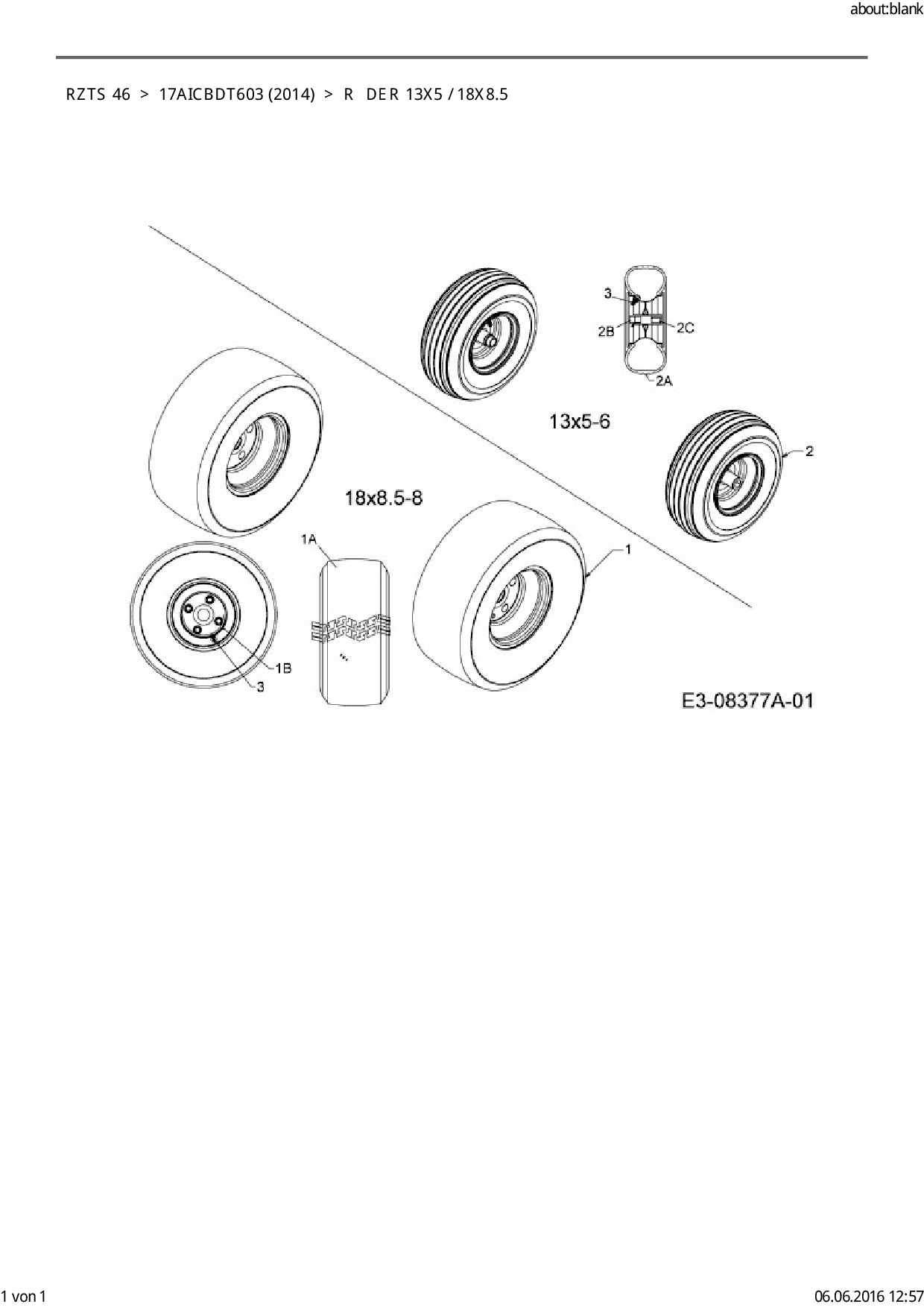Ersatzteile für Zero Turn Cub Cadet RZTS 46 aus der Zeichnung Räder 13x5 / 18x8.5: