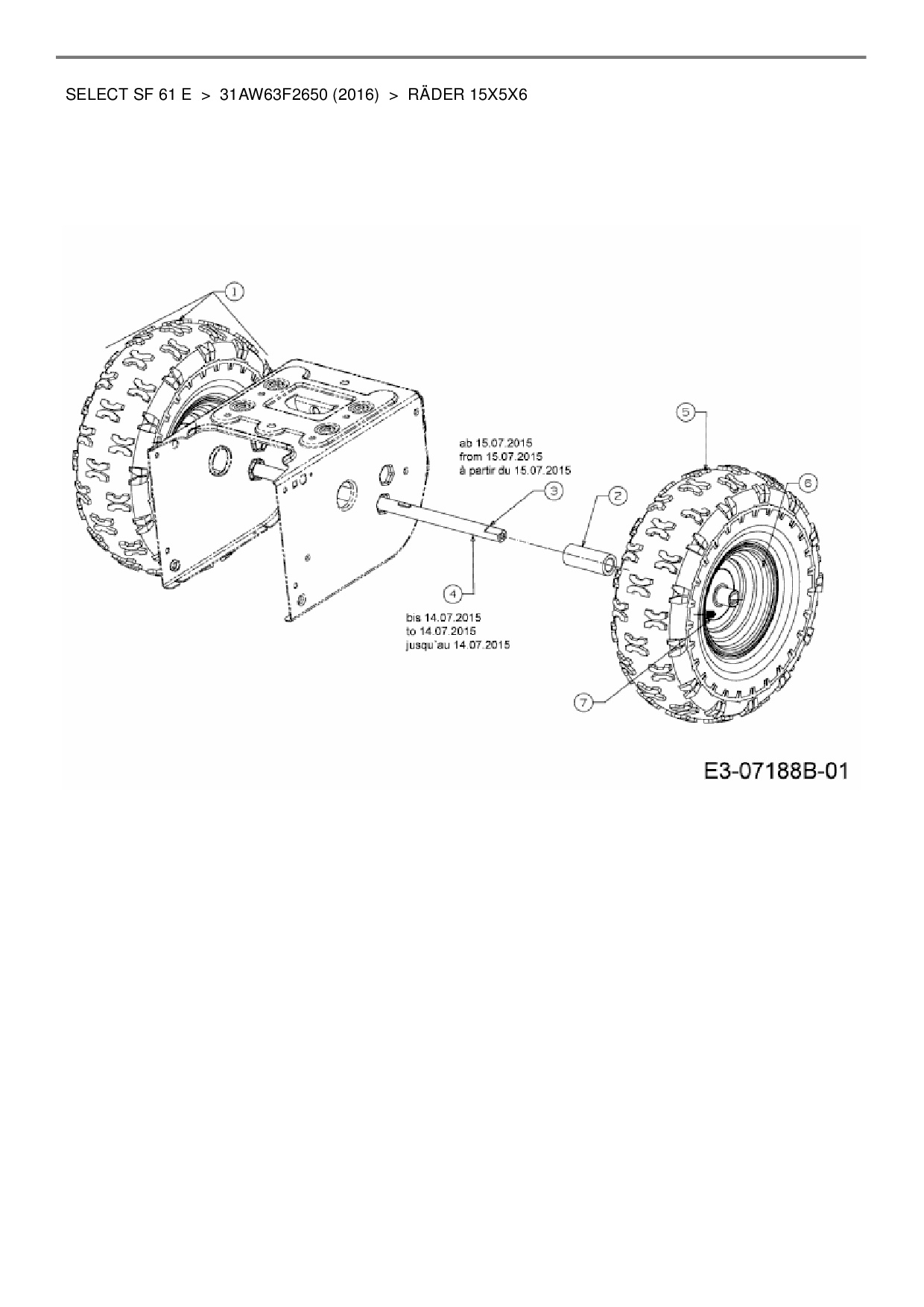 Ersatzteile für Schneefräse Wolf-Garten Select SF 61 E aus der Zeichnung Räder 15x5x6: