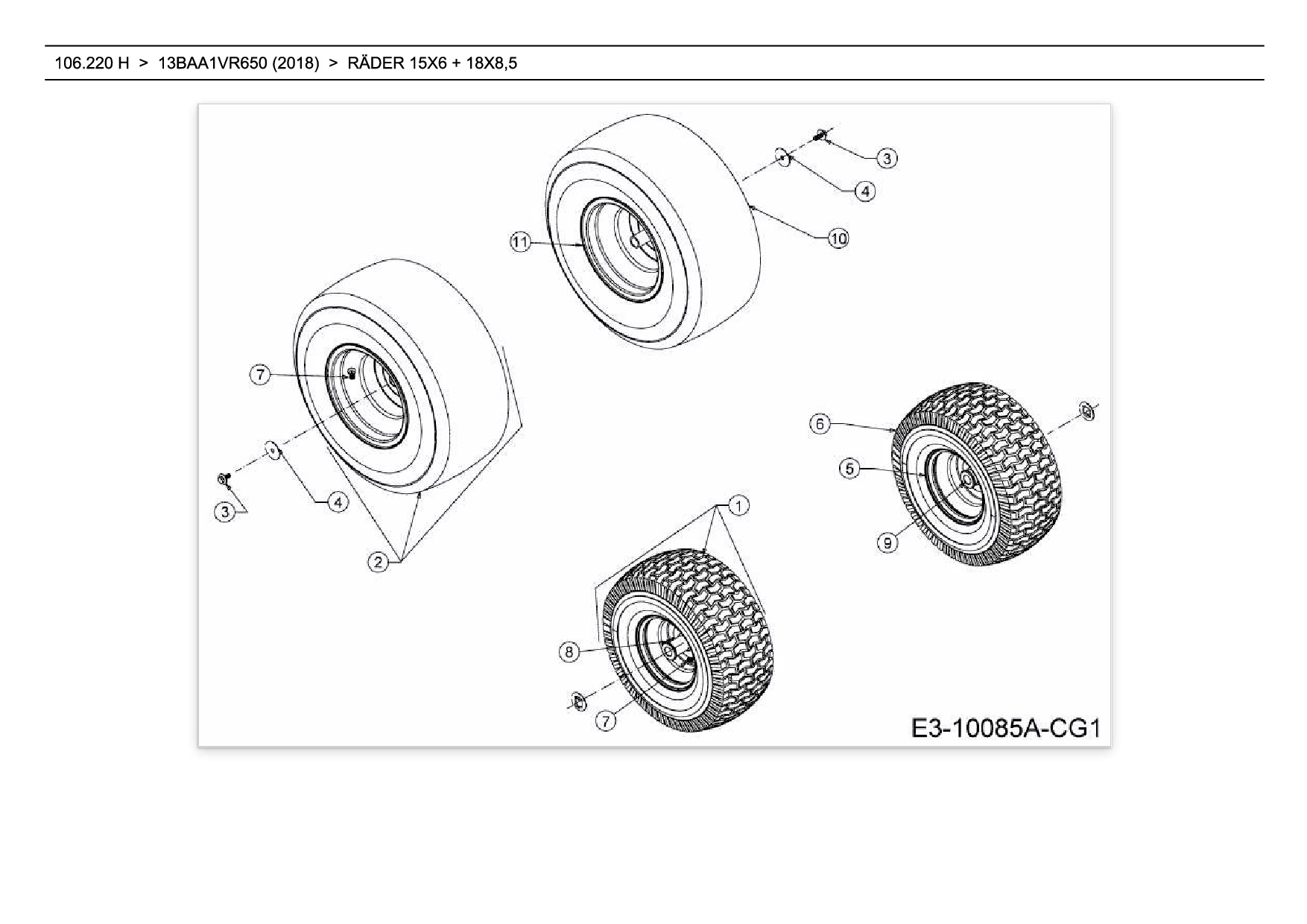 Ersatzteile für Rasentraktor Wolf-Garten Expert 106.220 H aus der Zeichnung Räder 15x6 + 18x8,5: