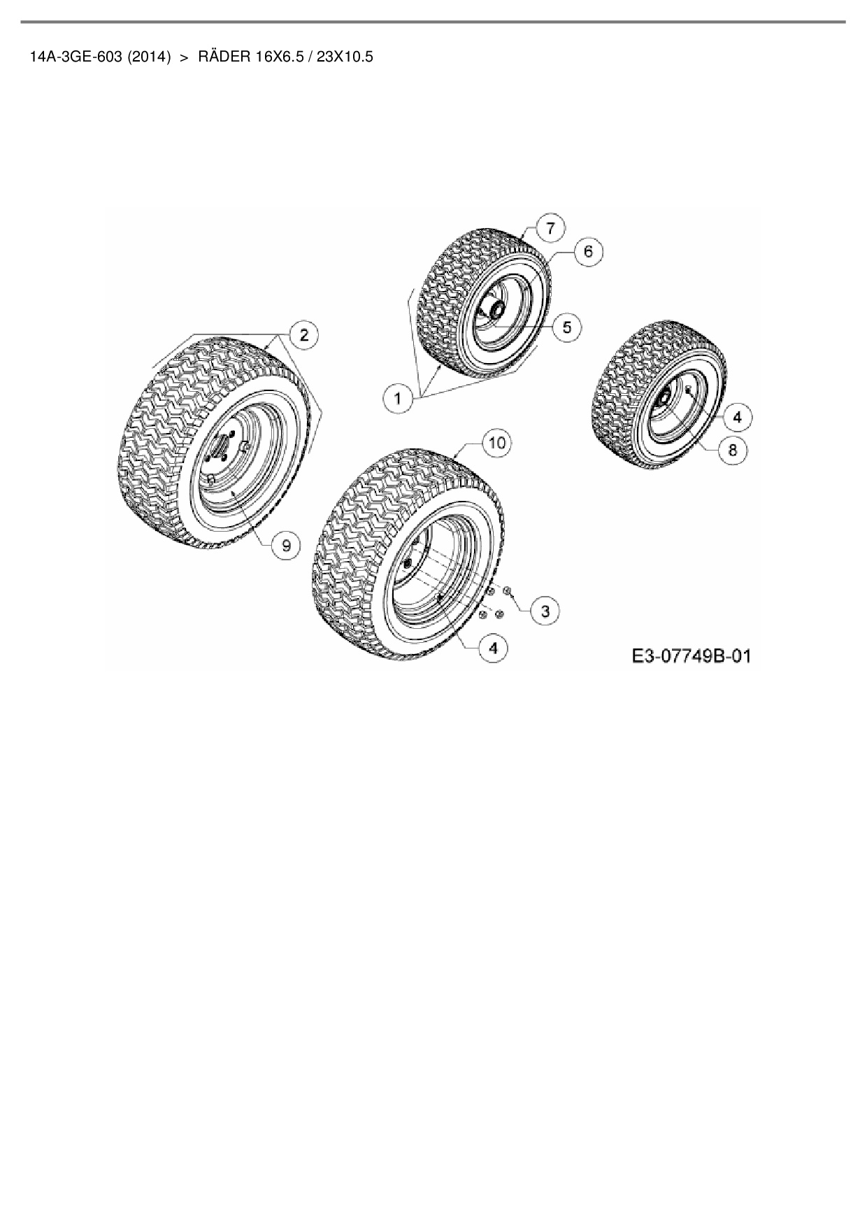 Download Ersatzteil-Zeichnung Cub Cadet GTX 2100 Zeichnung Räder 16x6.5 / 23x10.5 (PDF-Format)