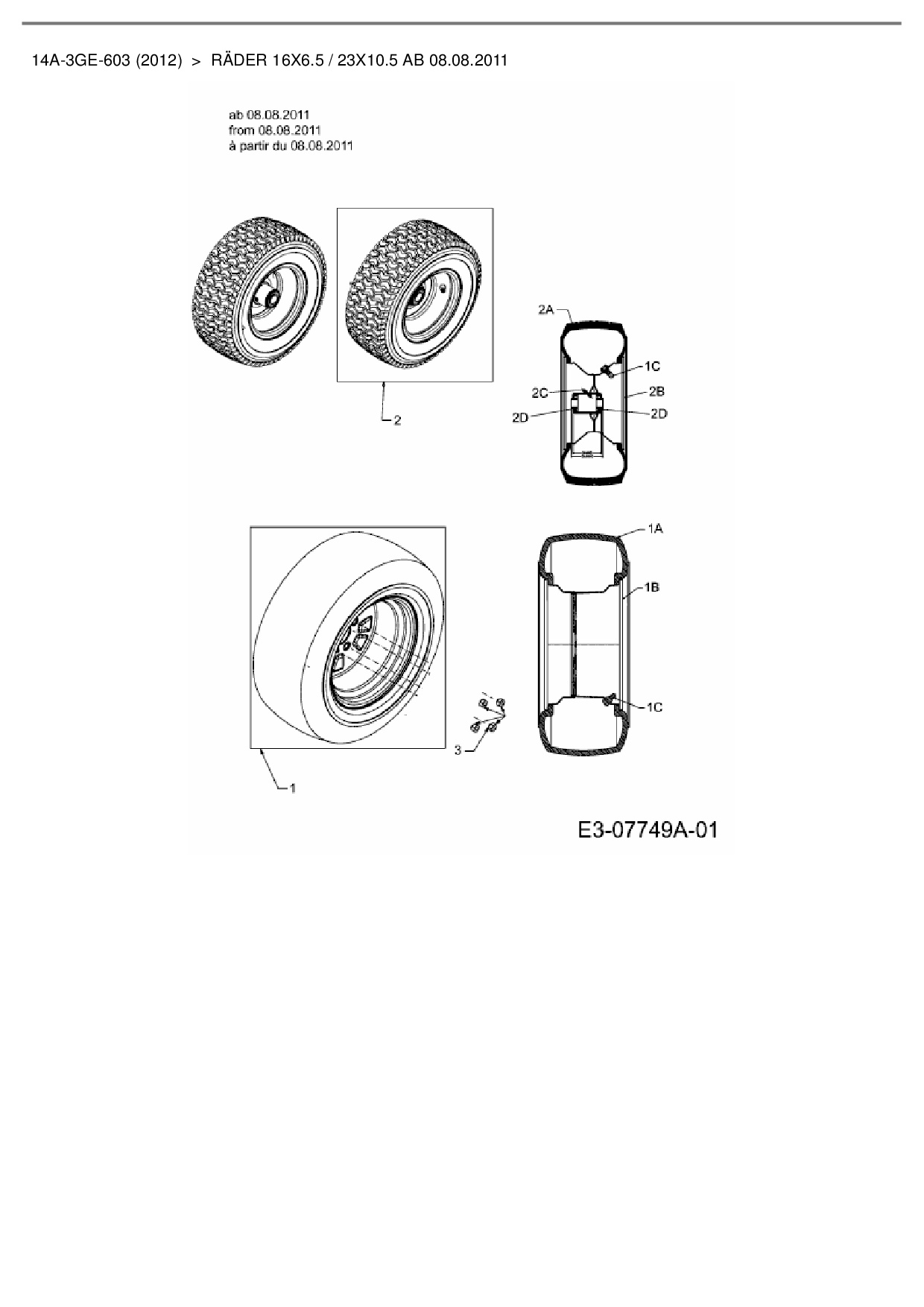 Ersatzteile für Gartentraktor Cub Cadet GTX 2100 aus der Zeichnung Räder 16x6.5 / 23x10.5 ab 08.08.2011: