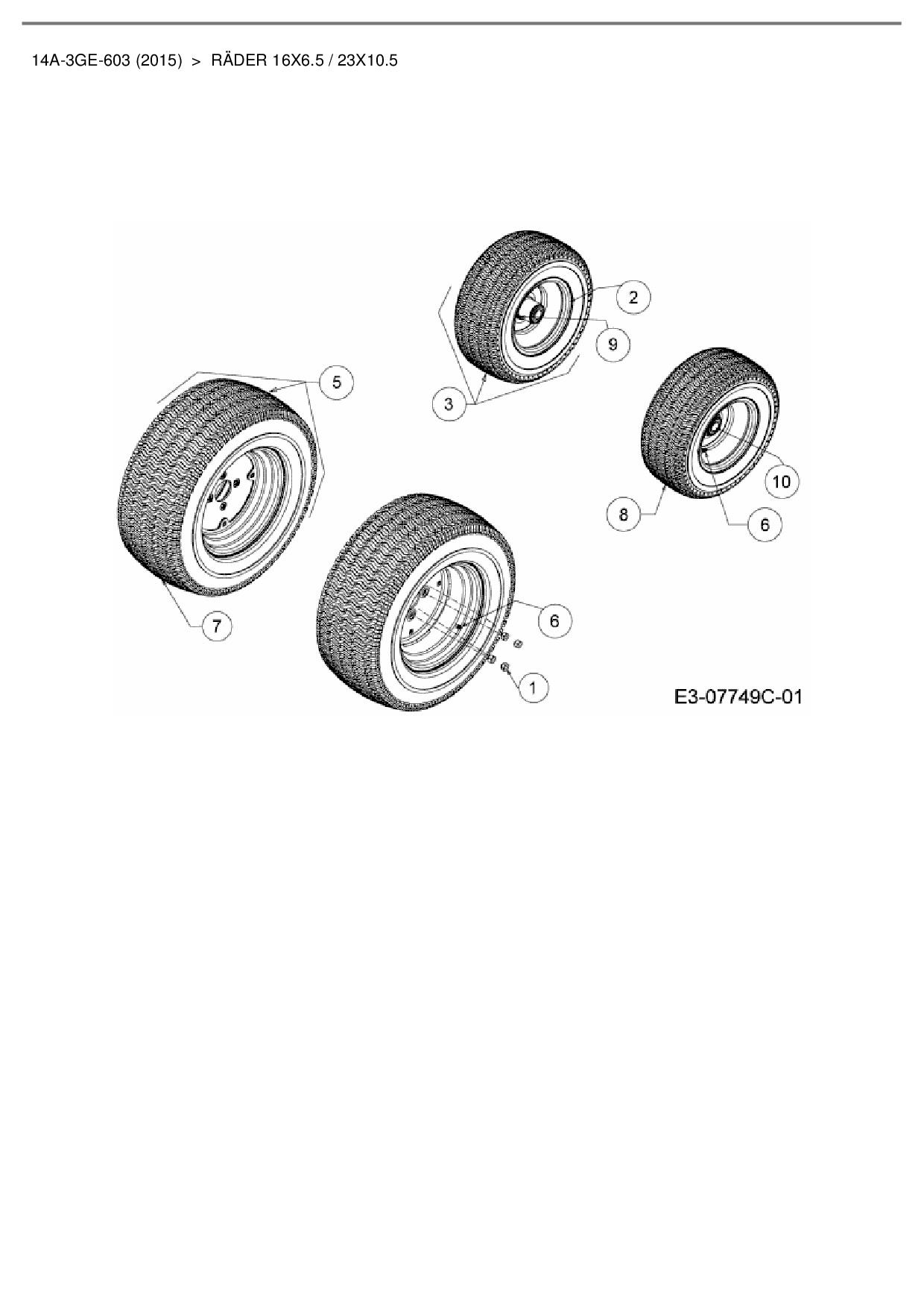 Ersatzteile für Gartentraktor Cub Cadet GTX 2100 aus der Zeichnung Räder 16x6.5 / 23x10.5: