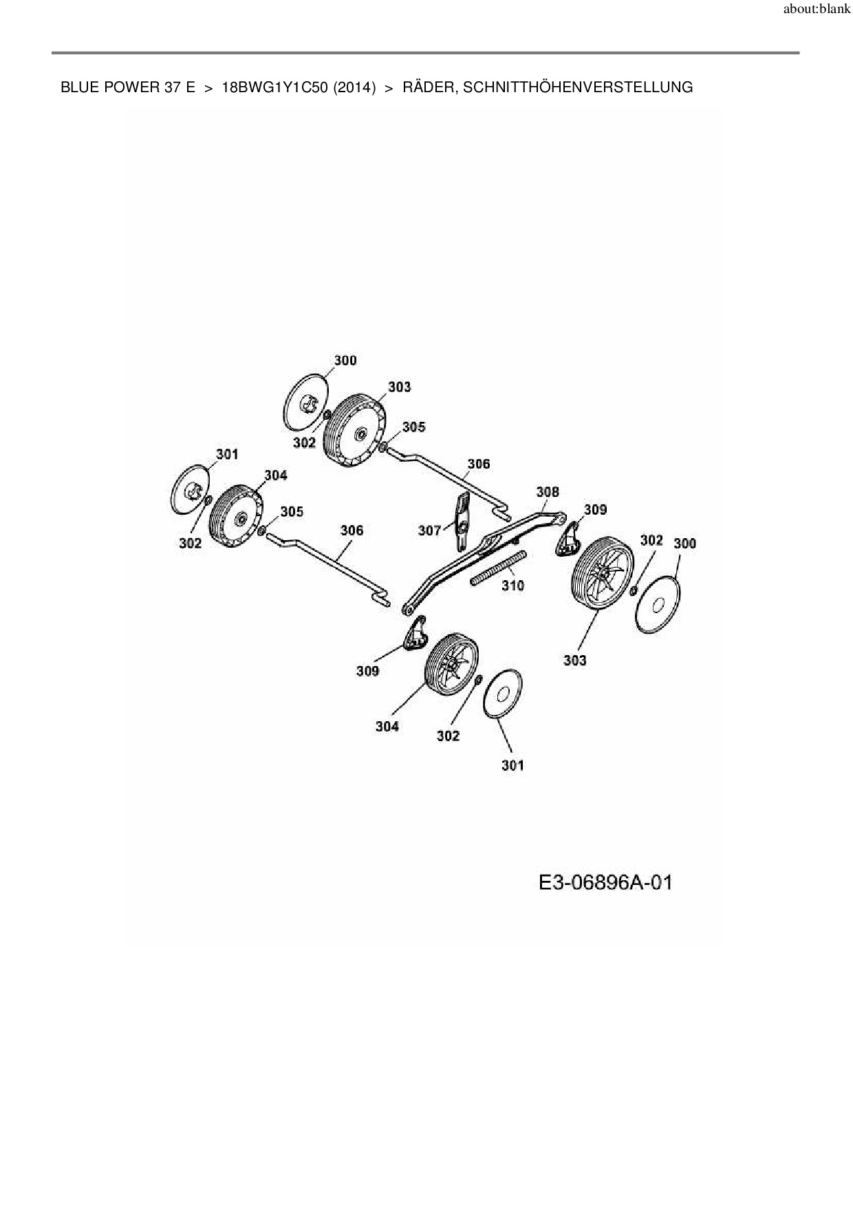 Download Ersatzteil-Zeichnung Wolf-Garten Blue Power 37 E Zeichnung Räder, Schnitthöhenverstellung (PDF-Format)