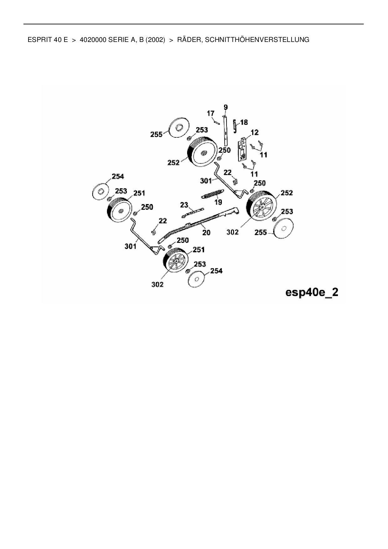 Ersatzteile für Elektromäher Wolf-Garten Esprit 40 E aus der Zeichnung Räder, Schnitthöhenverstellung: