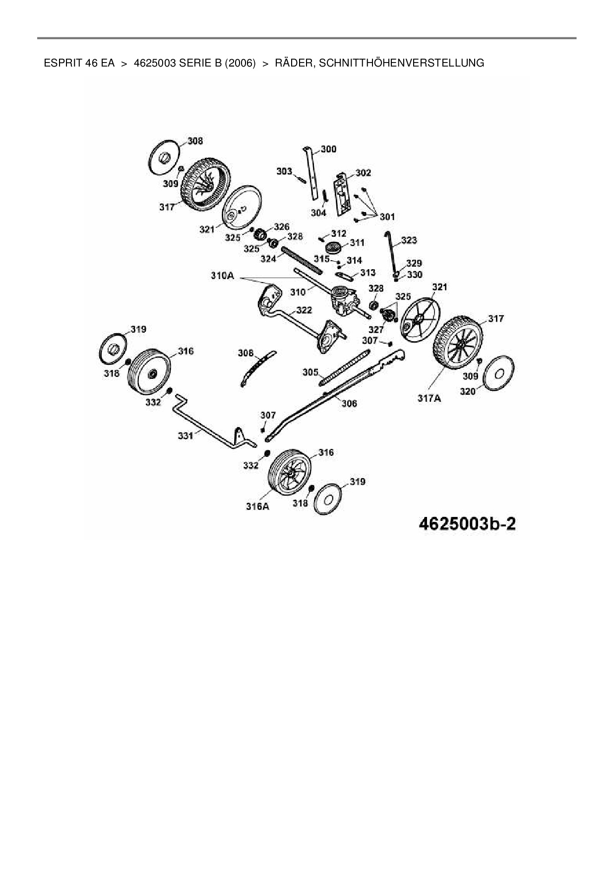 Zeichnung für Wolf-Garten Elektromäher mit Antrieb Esprit 46 EA mit der Geräte-Artikelnr. 4625003 Serie B ab Baujahr 2006: