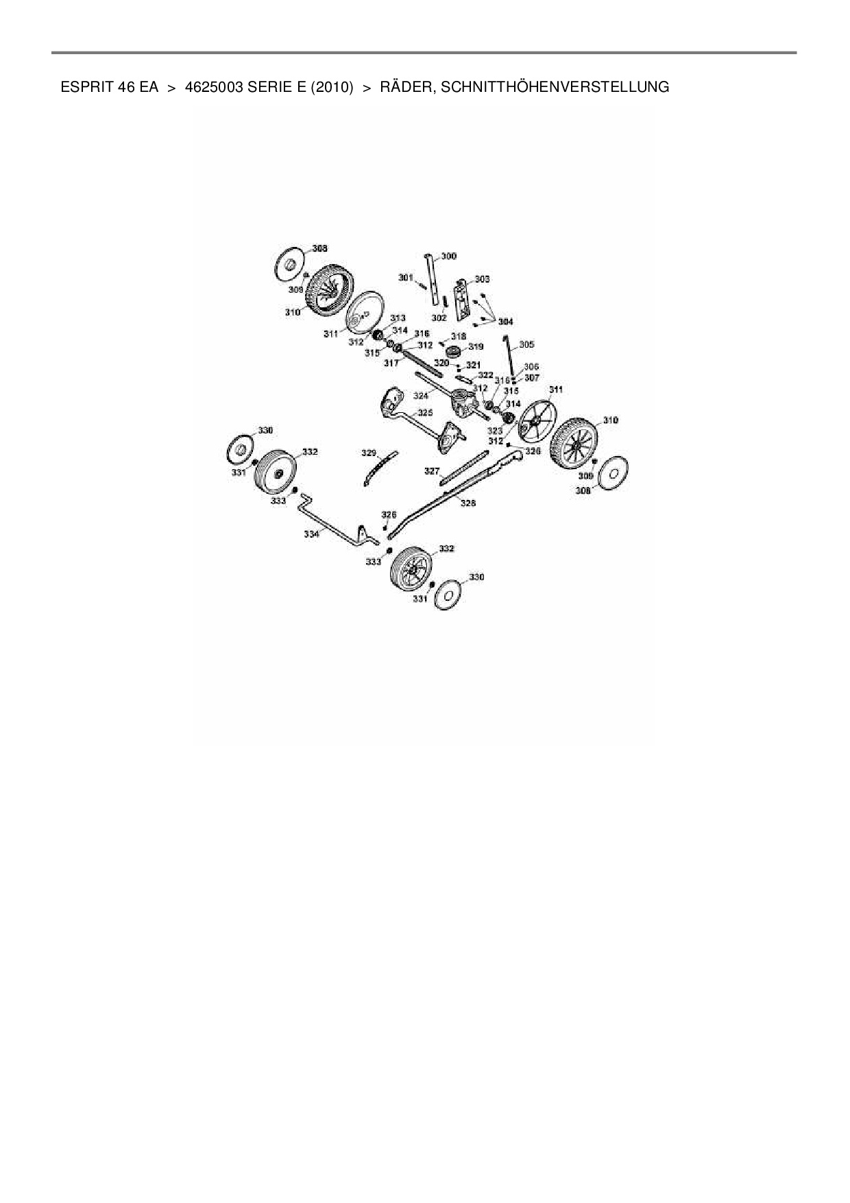 Download Ersatzteil-Zeichnung Wolf-Garten Esprit 46 EA Zeichnung Räder, Schnitthöhenverstellung (PDF-Format)
