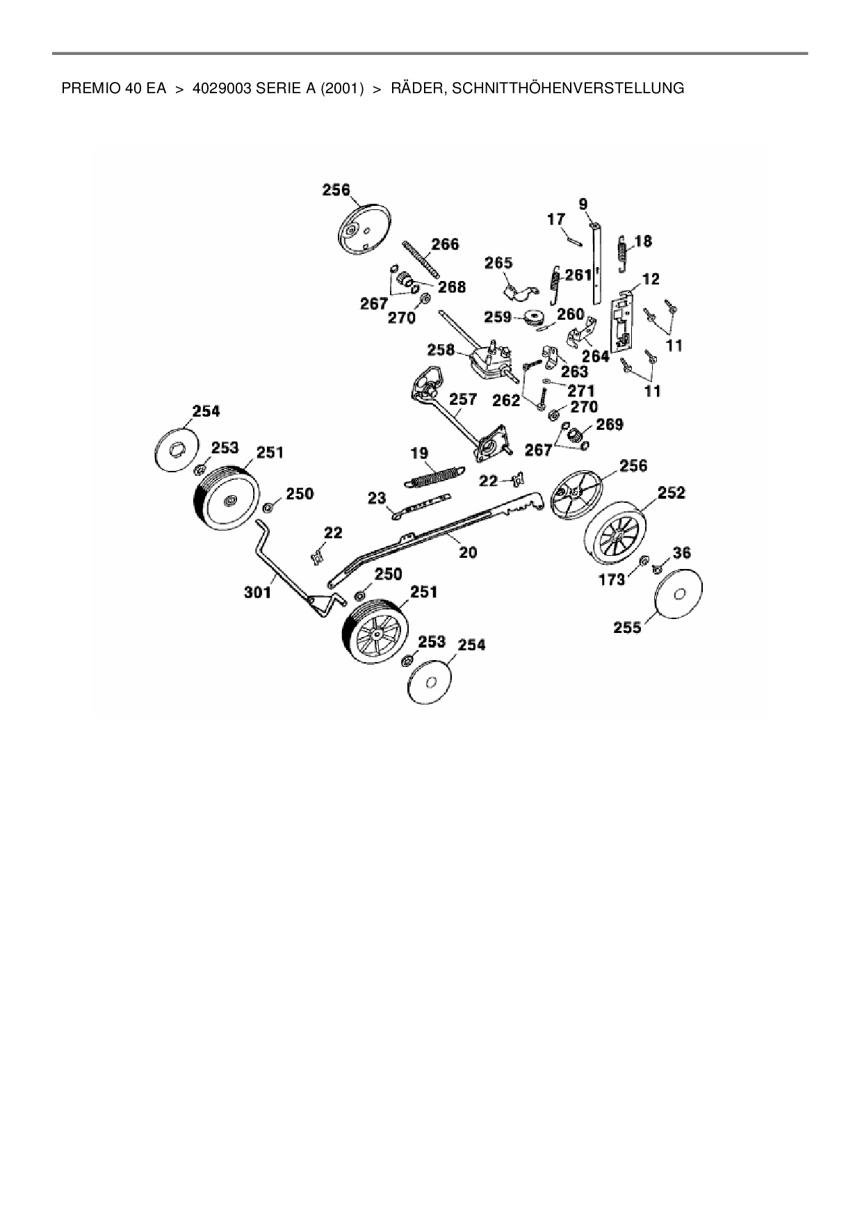 Ersatzteile für Elektromäher mit Antrieb Wolf-Garten Premio 40 EA aus der Zeichnung Räder, Schnitthöhenverstellung: