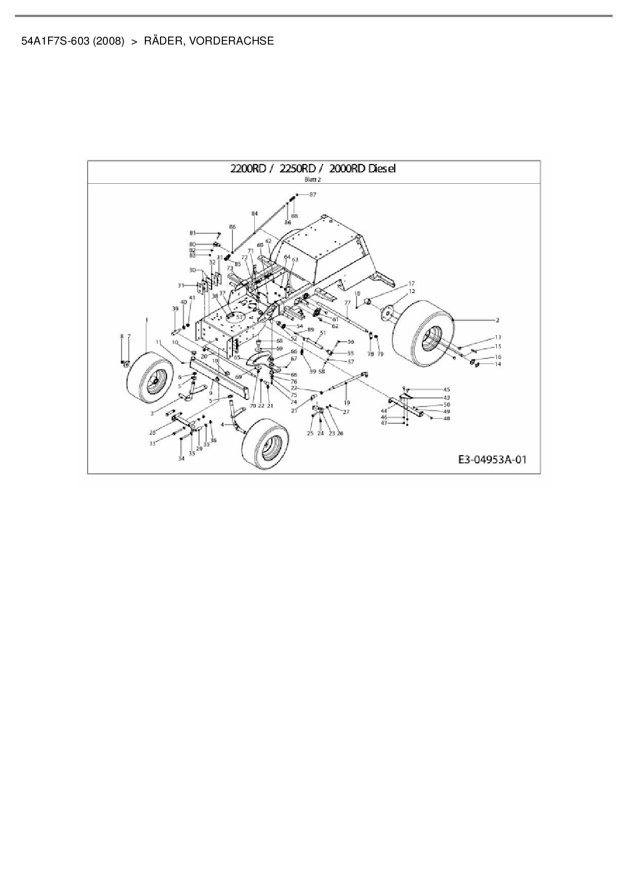 Ersatzteile für Kompakttraktor Cub Cadet CC 2000 RD aus der Zeichnung Räder, Vorderachse: