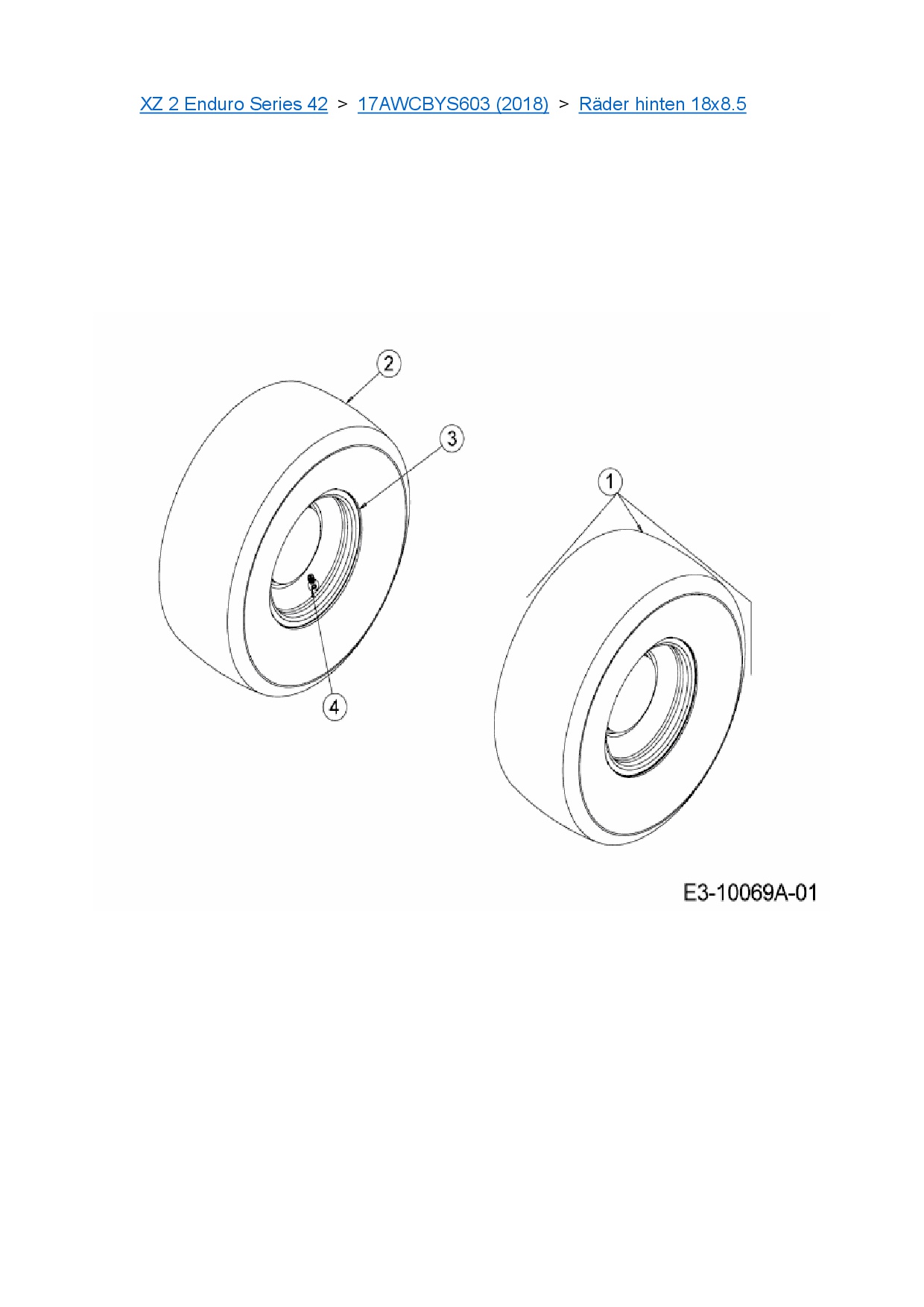 Ersatzteile für Zero Turn Cub Cadet XZ 2 Enduro Series 42 aus der Zeichnung Räder hinten 18x8.5: