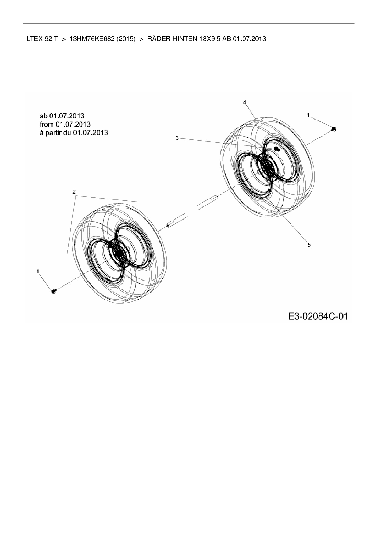 Ersatzteile für Rasentraktor MTD LTEX 92 T aus der Zeichnung Räder hinten 18x9.5 ab 01.07.2013: