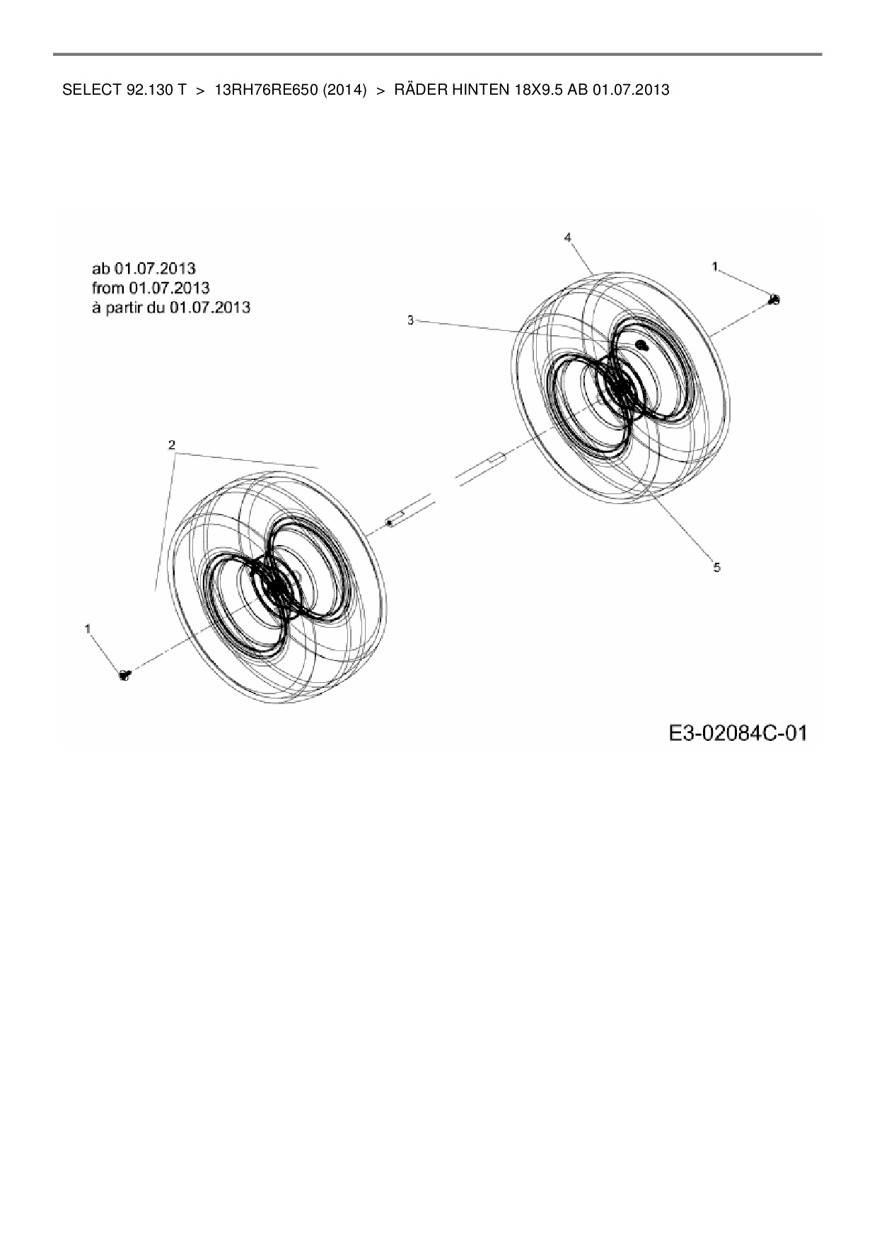 Ersatzteile für Rasentraktor Wolf-Garten Select 92.130 T aus der Zeichnung Räder hinten 18x9.5 ab 01.07.2013: