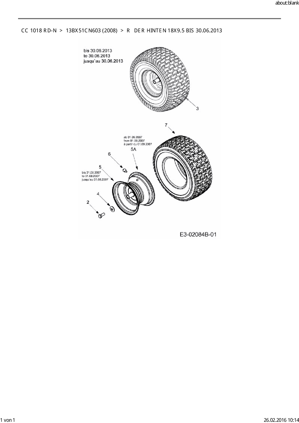 Download Ersatzteil-Zeichnung Cub Cadet CC 1018 RD-N Zeichnung Räder hinten 18x9.5 bis 30.06.2013 (PDF-Format)