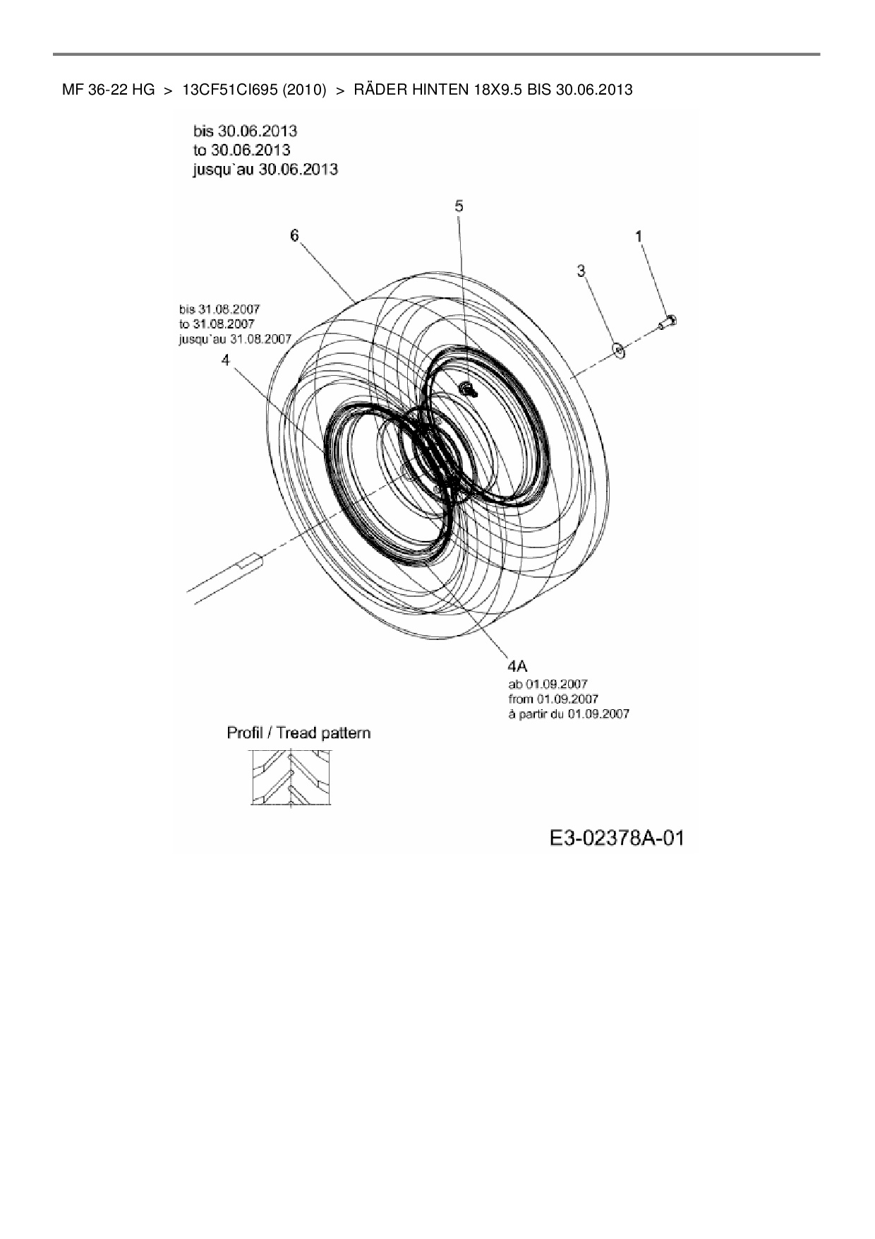 Ersatzteile für Rasentraktor Massey Ferguson MF 36-22 HG aus der Zeichnung Räder hinten 18x9.5 bis 30.06.2013: