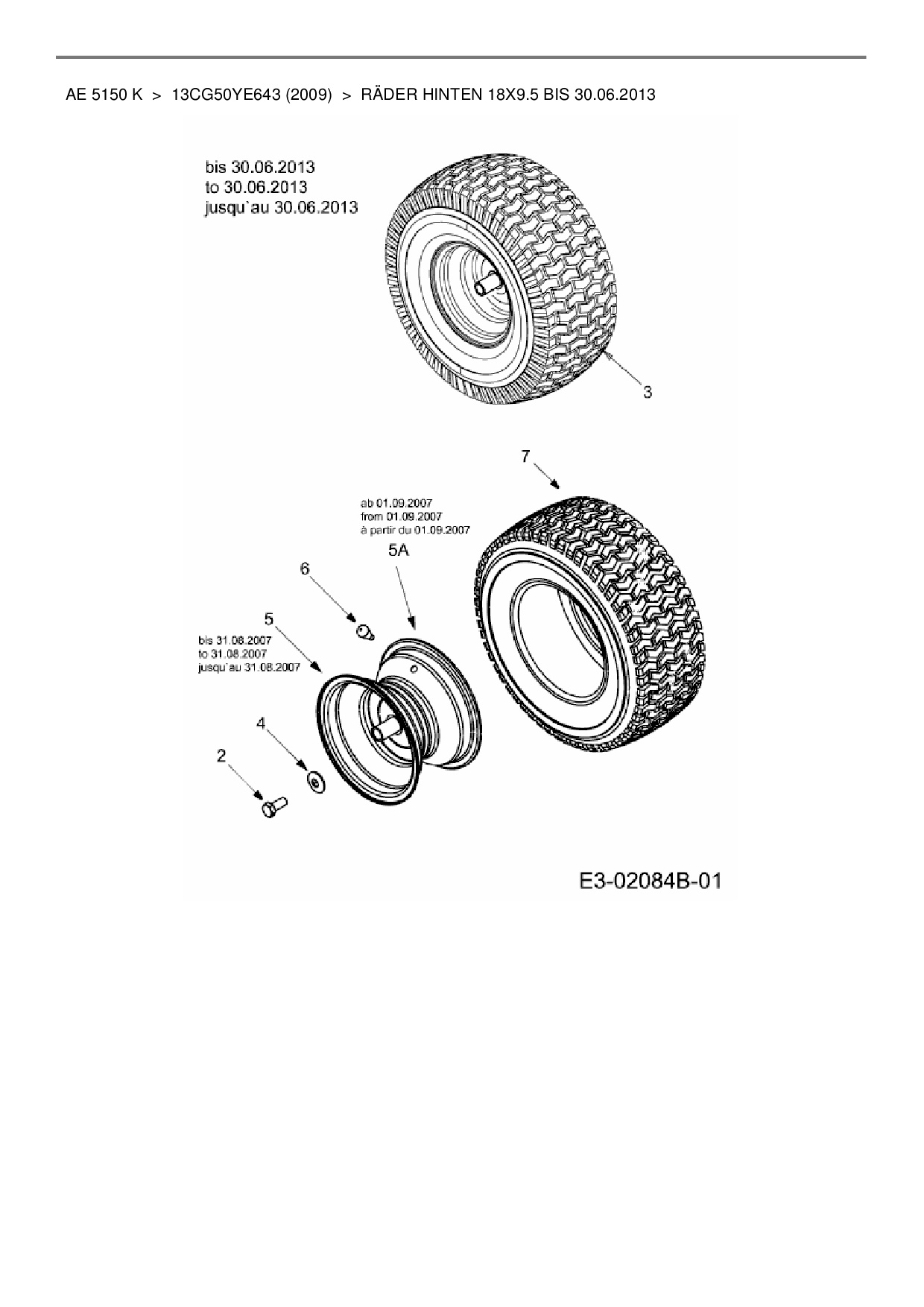 Ersatzteile für Rasentraktor Yard-Man AE 5150 K aus der Zeichnung Räder hinten 18x9.5 bis 30.06.2013: