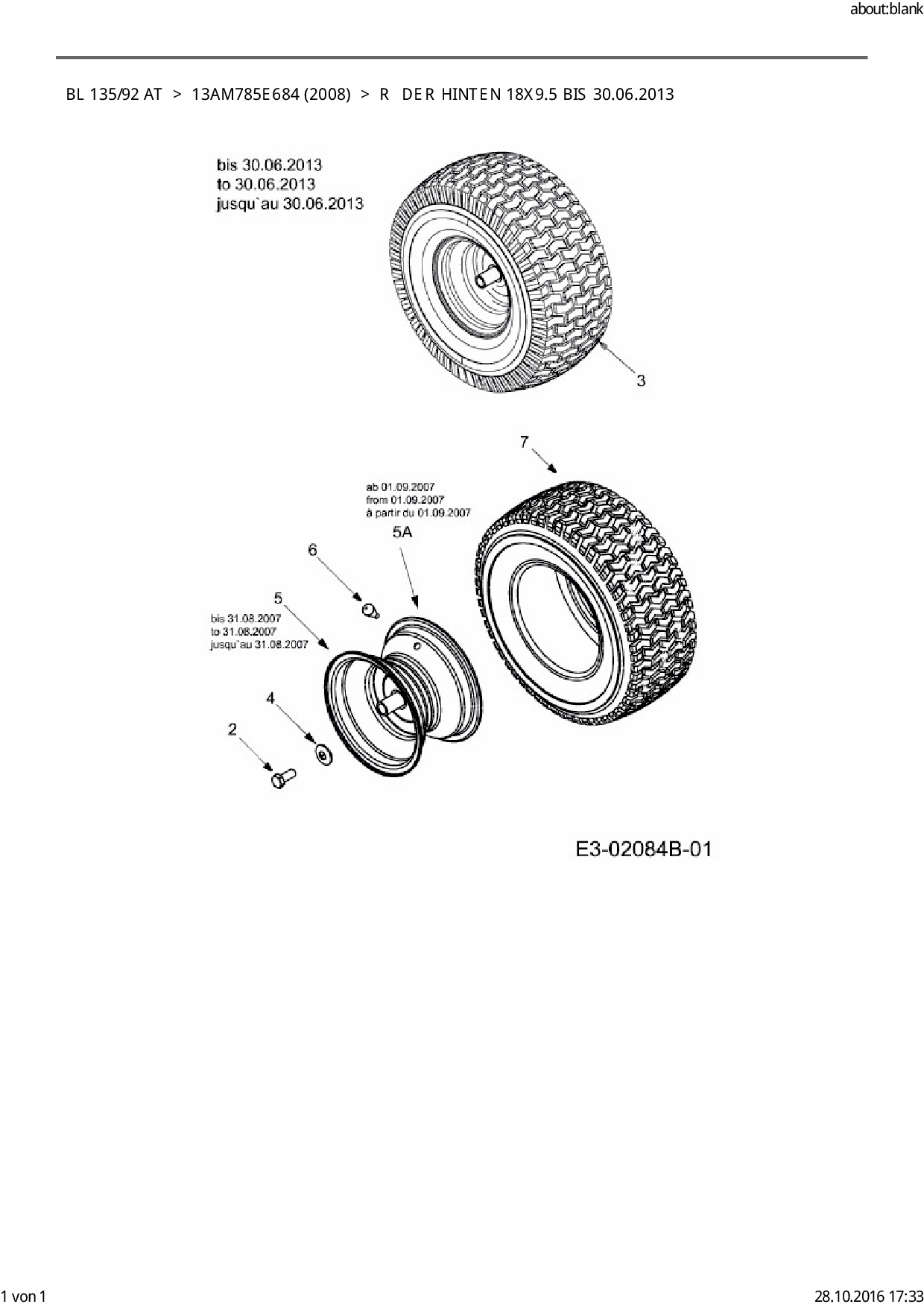 Ersatzteile für Rasentraktor Bolens BL 135/92 AT aus der Zeichnung Räder hinten 18x9.5 bis 30.06.2013: