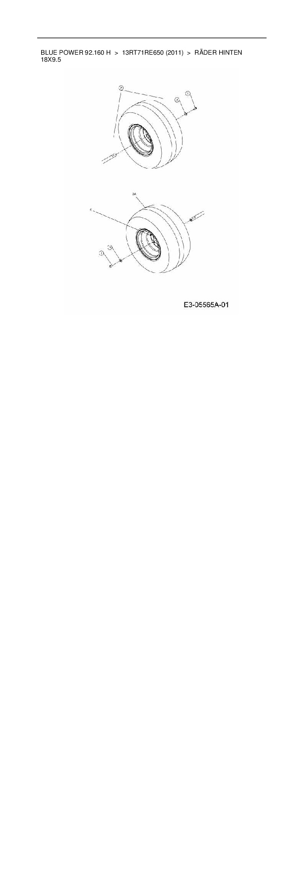 Ersatzteile für Rasentraktor Wolf-Garten Blue Power 92.160 H aus der Zeichnung Räder hinten 18x9.5: