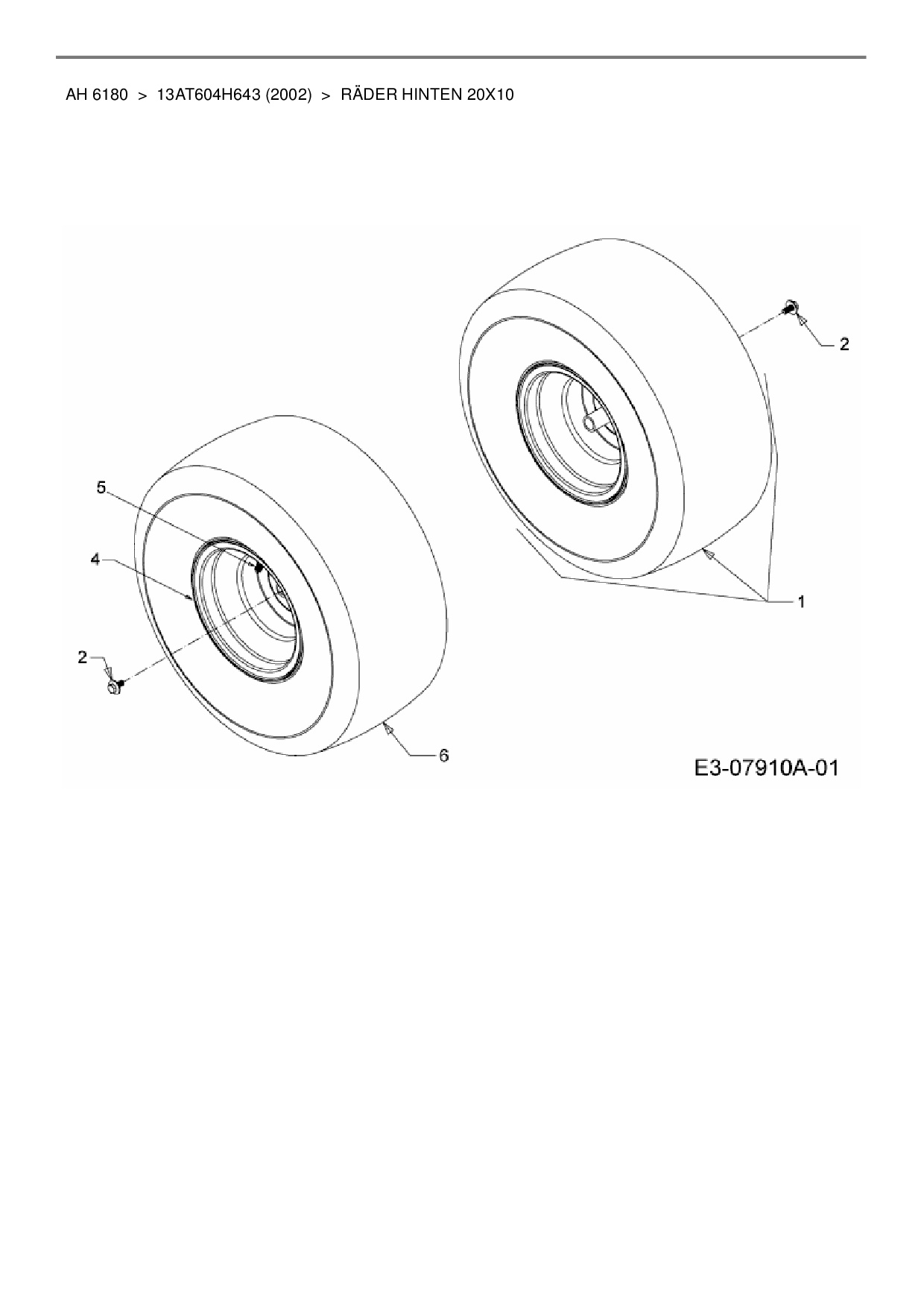 Ersatzteile für Rasentraktor Yard-Man AH 6180 aus der Zeichnung Räder hinten 20x10:
