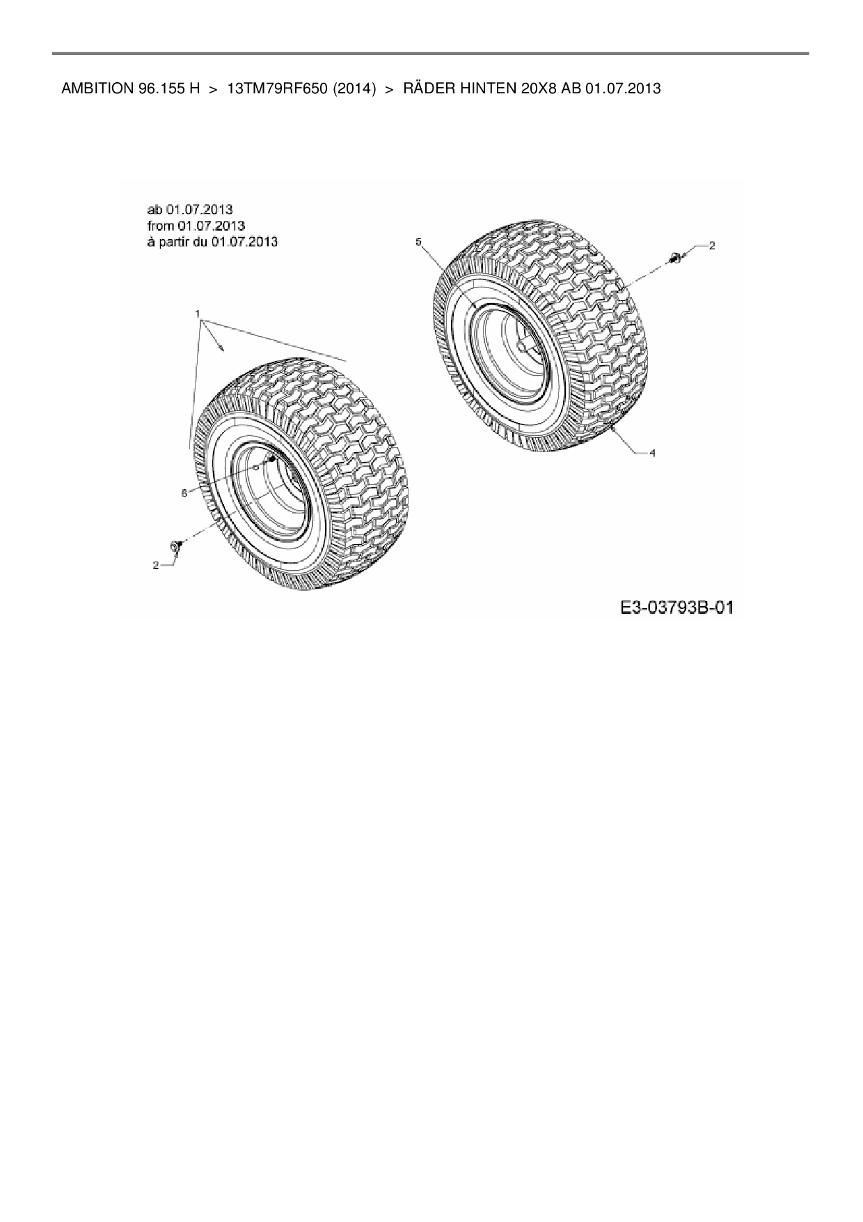 Ersatzteile für Rasentraktor Wolf-Garten Ambition 96.155 H aus der Zeichnung Räder hinten 20x8 ab 01.07.2013: