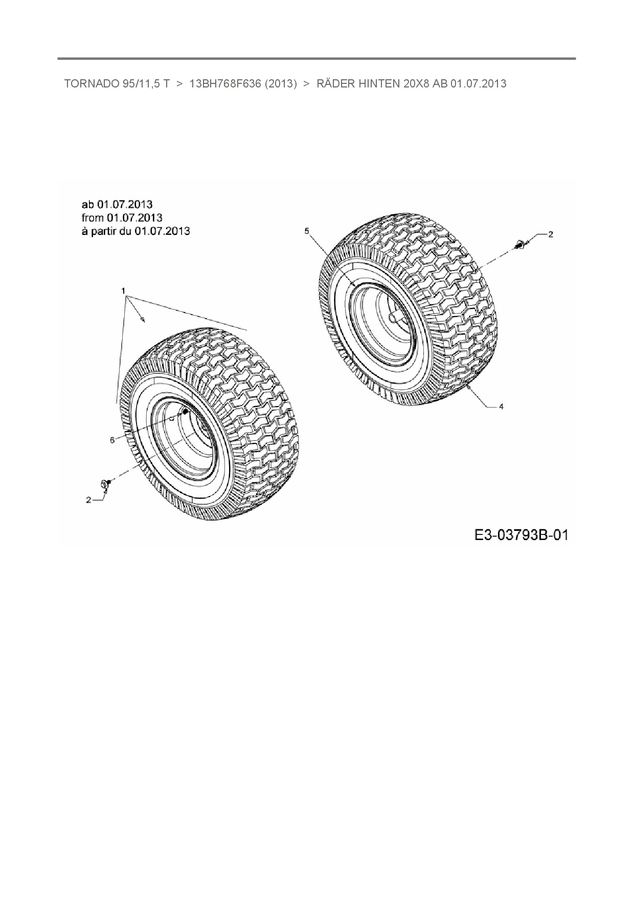 Ersatzteile für Rasentraktor Oleo-Mac Tornado 95/11,5 T aus der Zeichnung Räder hinten 20x8 ab 01.07.2013: