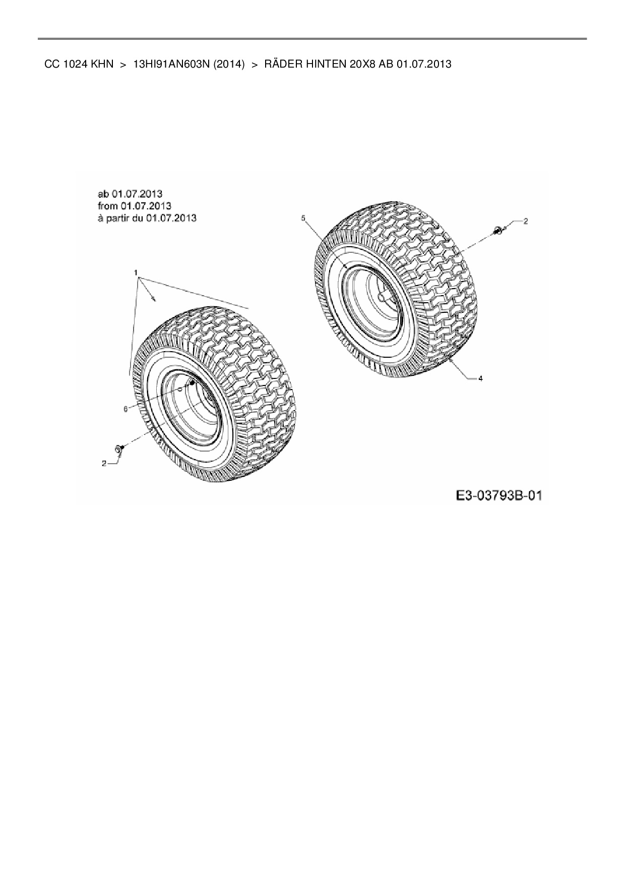 Ersatzteile für Rasentraktor Cub Cadet CC 1024 KHN aus der Zeichnung Räder hinten 20x8 ab 01.07.2013: