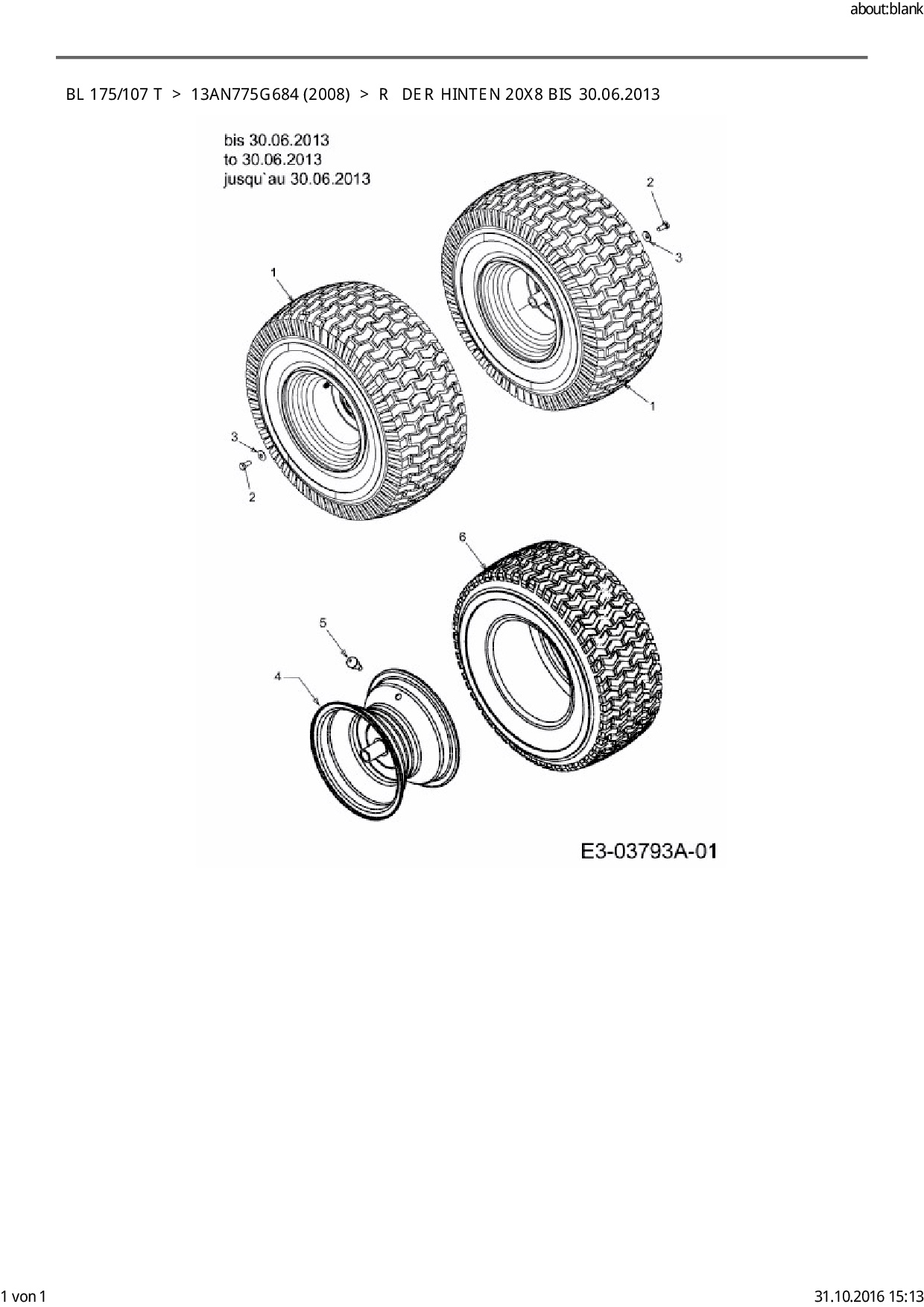 Ersatzteile für Rasentraktor Bolens BL 175/107 T aus der Zeichnung Räder hinten 20x8 bis 30.06.2013: