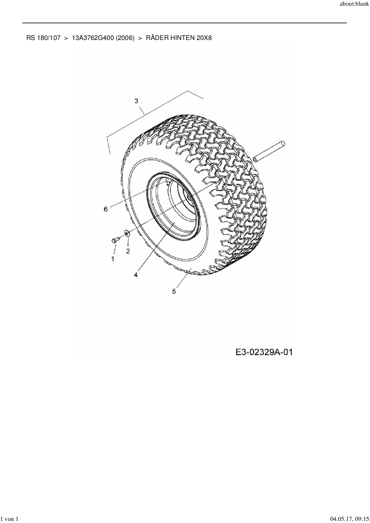 Ersatzteile für Rasentraktor MTD RS 180/107 aus der Zeichnung Räder hinten 20x8: