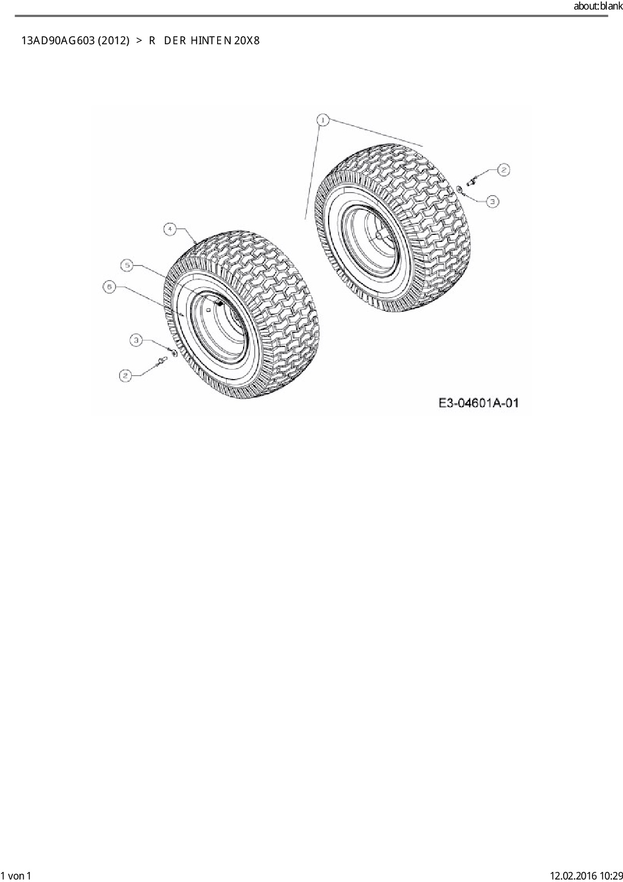 Ersatzteile für Rasentraktor Cub Cadet CC 1018 AG aus der Zeichnung Räder hinten 20x8: