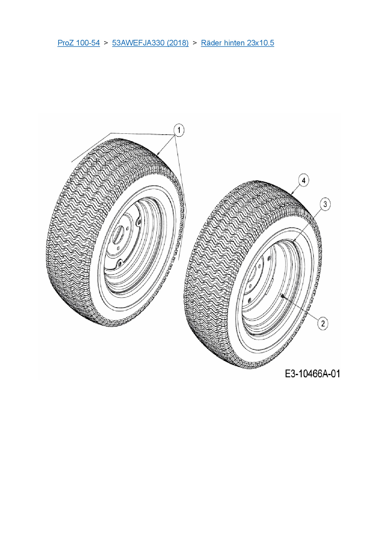 Ersatzteile für Zero Turn Cub Cadet ProZ 100-54 aus der Zeichnung Räder hinten 23x10.5:
