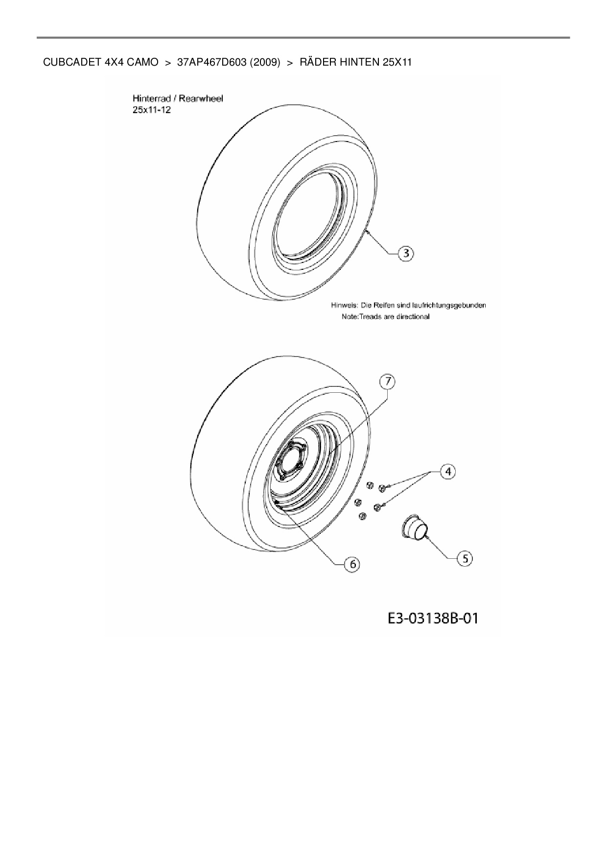 Ersatzteile für Utility Vehicle Cub Cadet CubCadet 4X4 Camo aus der Zeichnung Räder hinten 25x11: