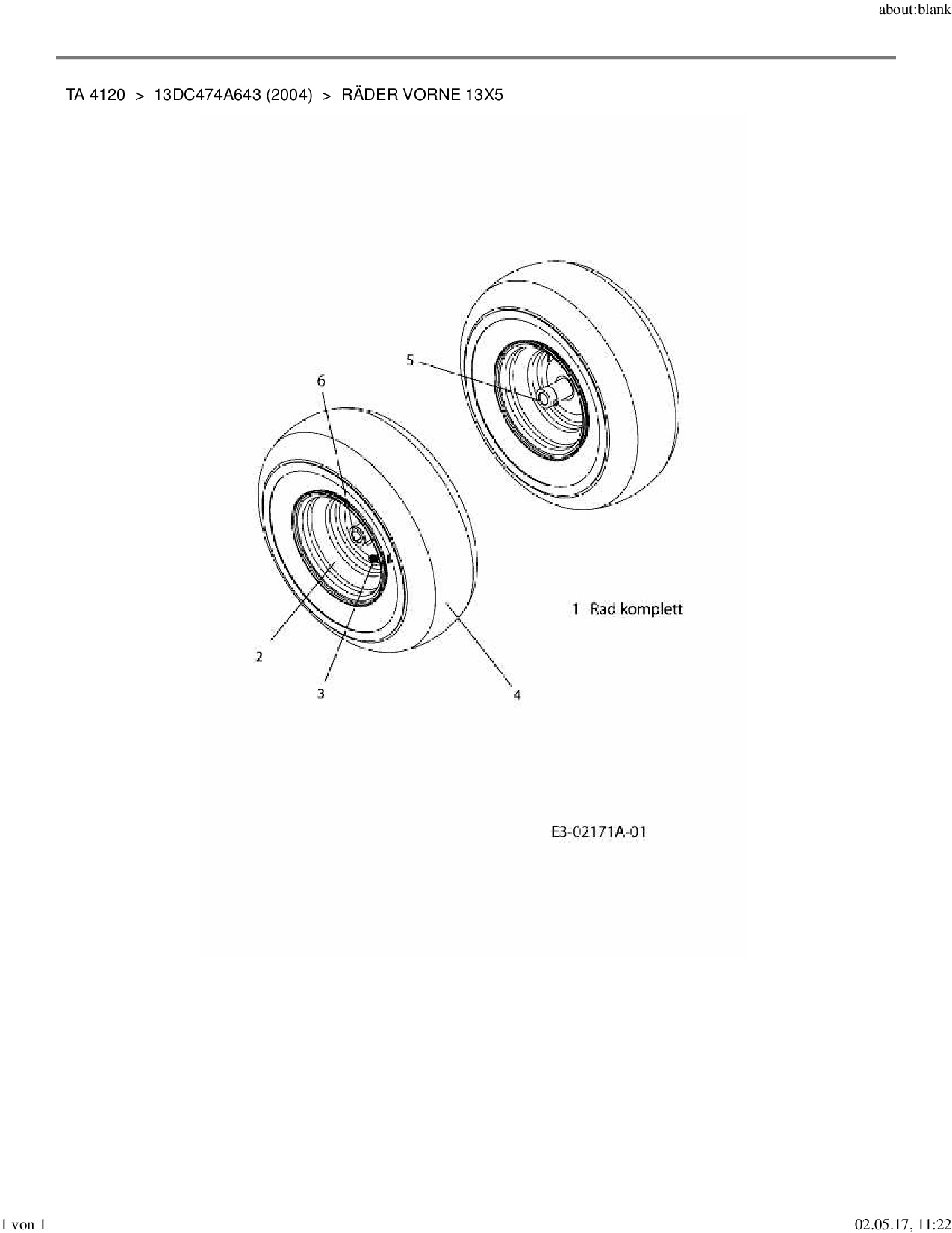 Download Ersatzteil-Zeichnung Yard-Man TA 4120 Zeichnung Räder vorne 13x5 (PDF-Format)