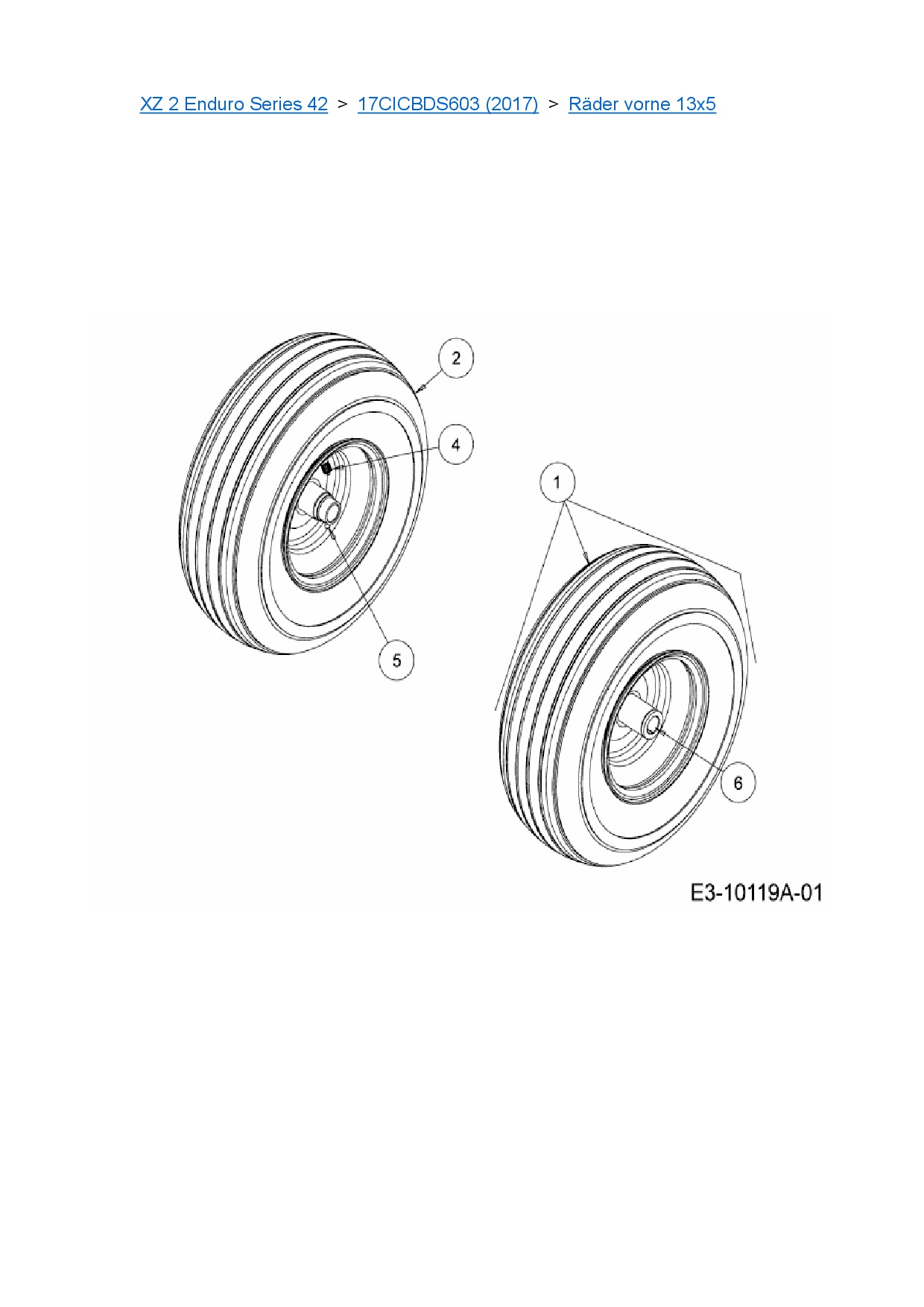 Ersatzteile für Zero Turn Cub Cadet XZ 2 Enduro Series 42 aus der Zeichnung Räder vorne 13x5: