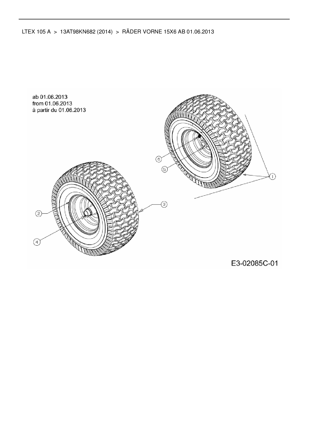 Ersatzteile für Rasentraktor MTD LTEX 105 A aus der Zeichnung Räder vorne 15x6 ab 01.06.2013: