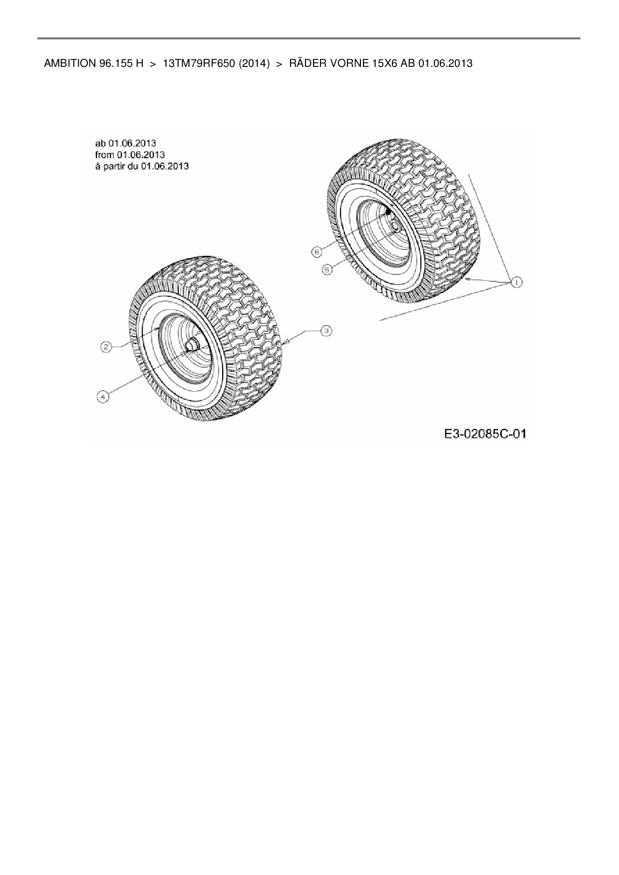 Download Ersatzteil-Zeichnung Wolf-Garten Ambition 96.155 H Zeichnung Räder vorne 15x6 ab 01.06.2013 (JPG-Format)