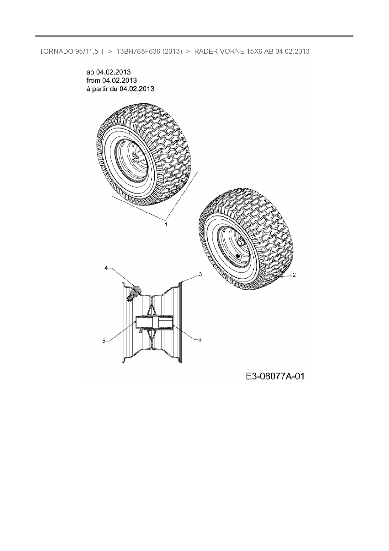 Ersatzteile für Rasentraktor Oleo-Mac Tornado 95/11,5 T aus der Zeichnung Räder vorne 15x6 ab 04.02.2013: