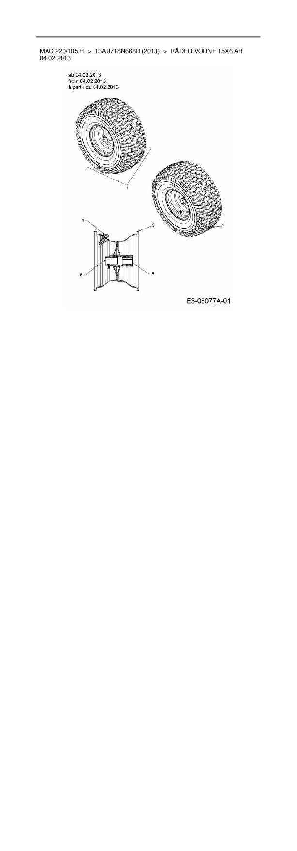 Download Ersatzteil-Zeichnung Mac Allister Mac 220/105 H Zeichnung Räder vorne 15x6 ab 04.02.2013 (PDF-Format)