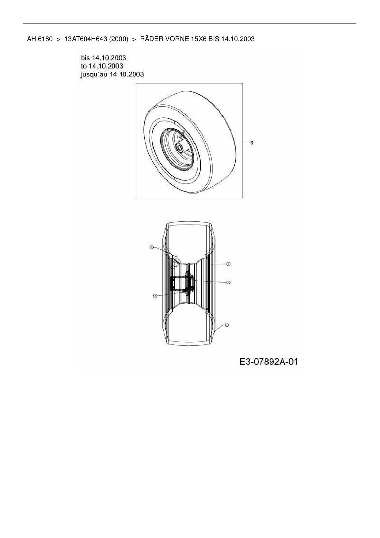 Ersatzteile für Rasentraktor Yard-Man AH 6180 aus der Zeichnung Räder vorne 15x6 bis 14.10.2003: