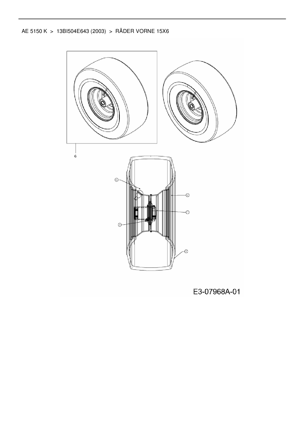 Download Ersatzteil-Zeichnung Yard-Man AE 5150 K Zeichnung Räder vorne 15x6 (PDF-Format)