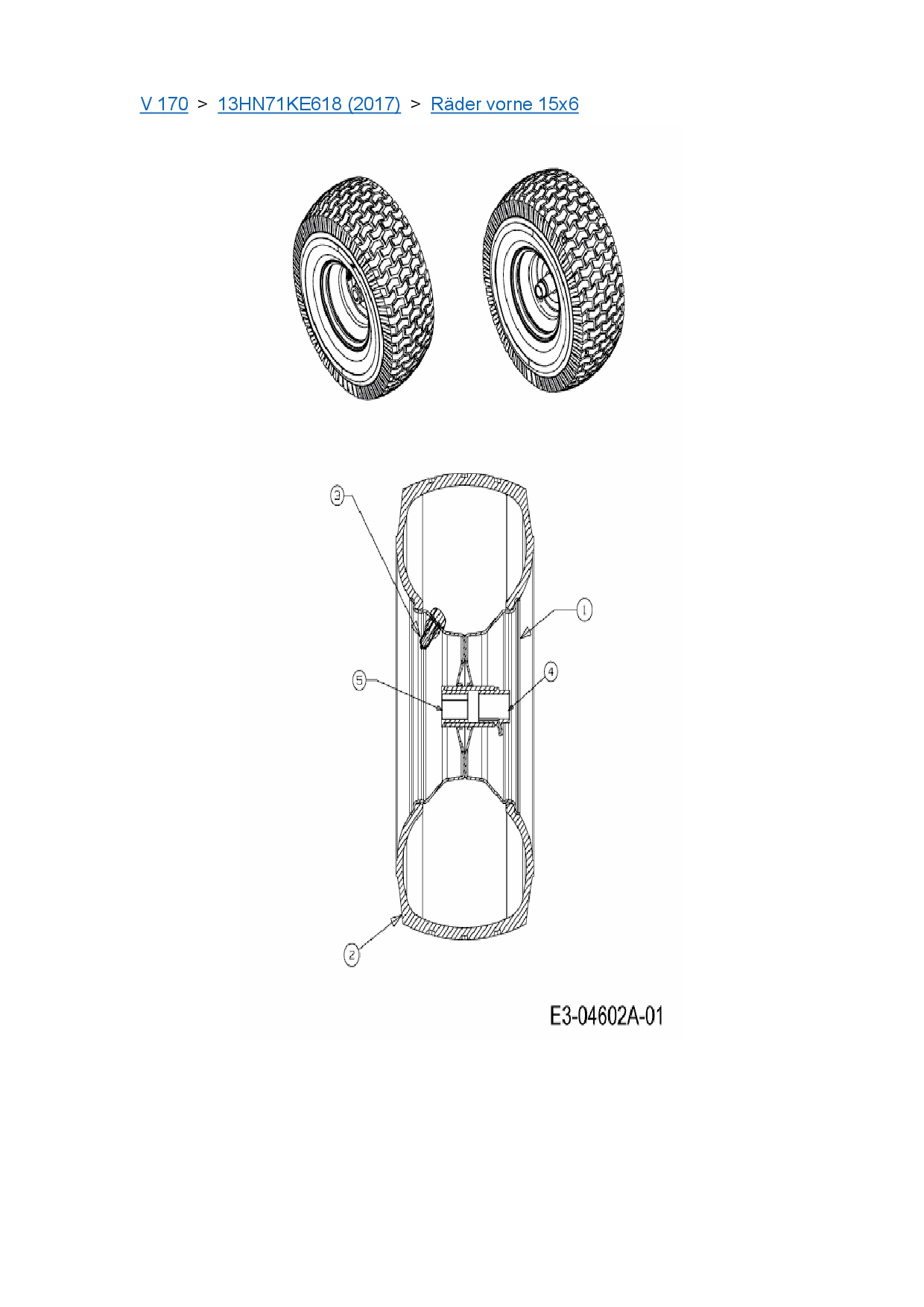 Ersatzteile für Rasentraktor Greenbase V 170 aus der Zeichnung Räder vorne 15x6: