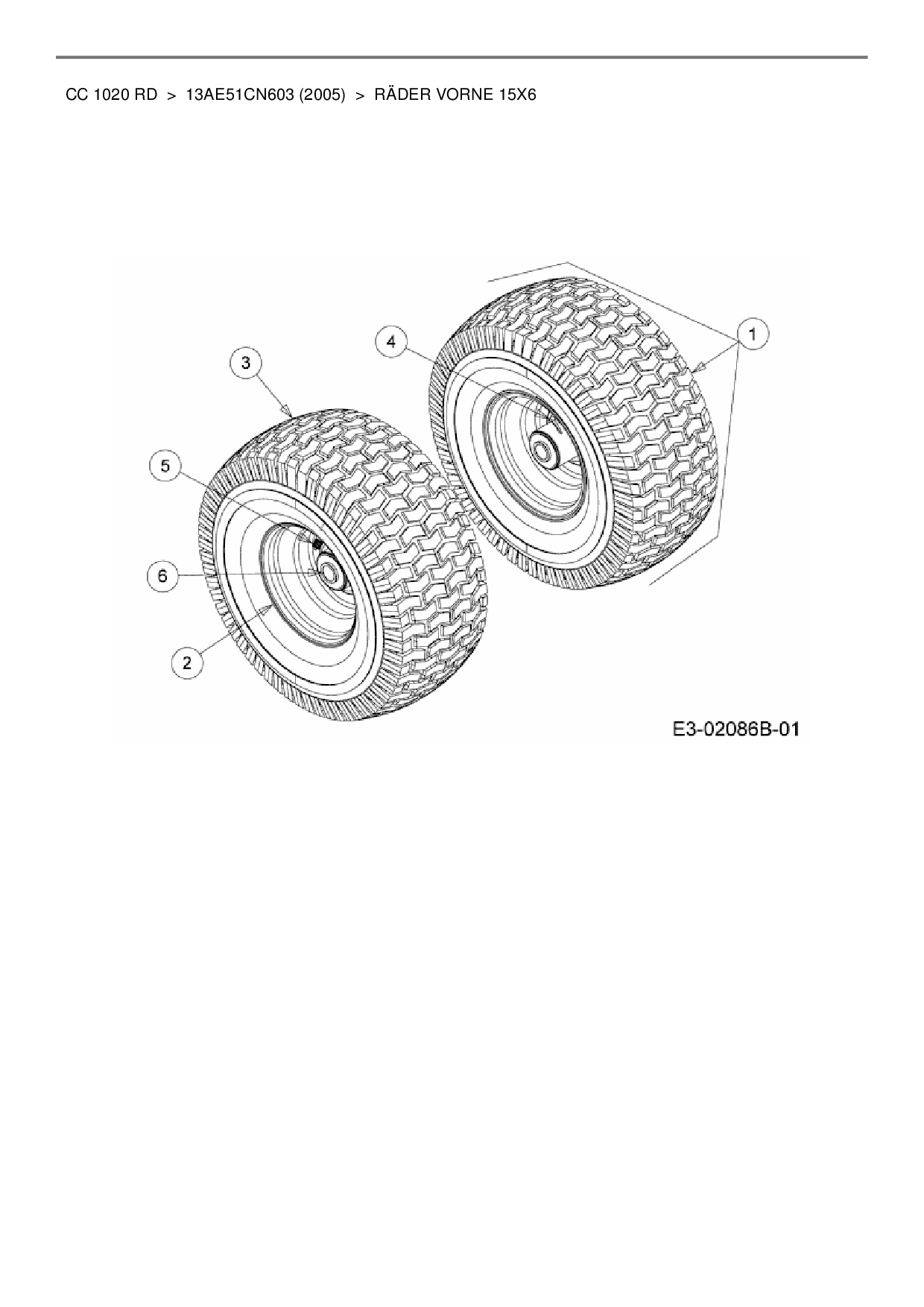 Ersatzteile für Rasentraktor Cub Cadet CC 1020 RD aus der Zeichnung Räder vorne 15x6: