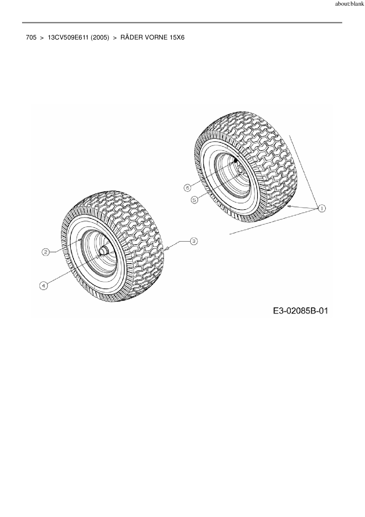 Ersatzteile für Rasentraktor Lawnflite 705 aus der Zeichnung Räder vorne 15x6: