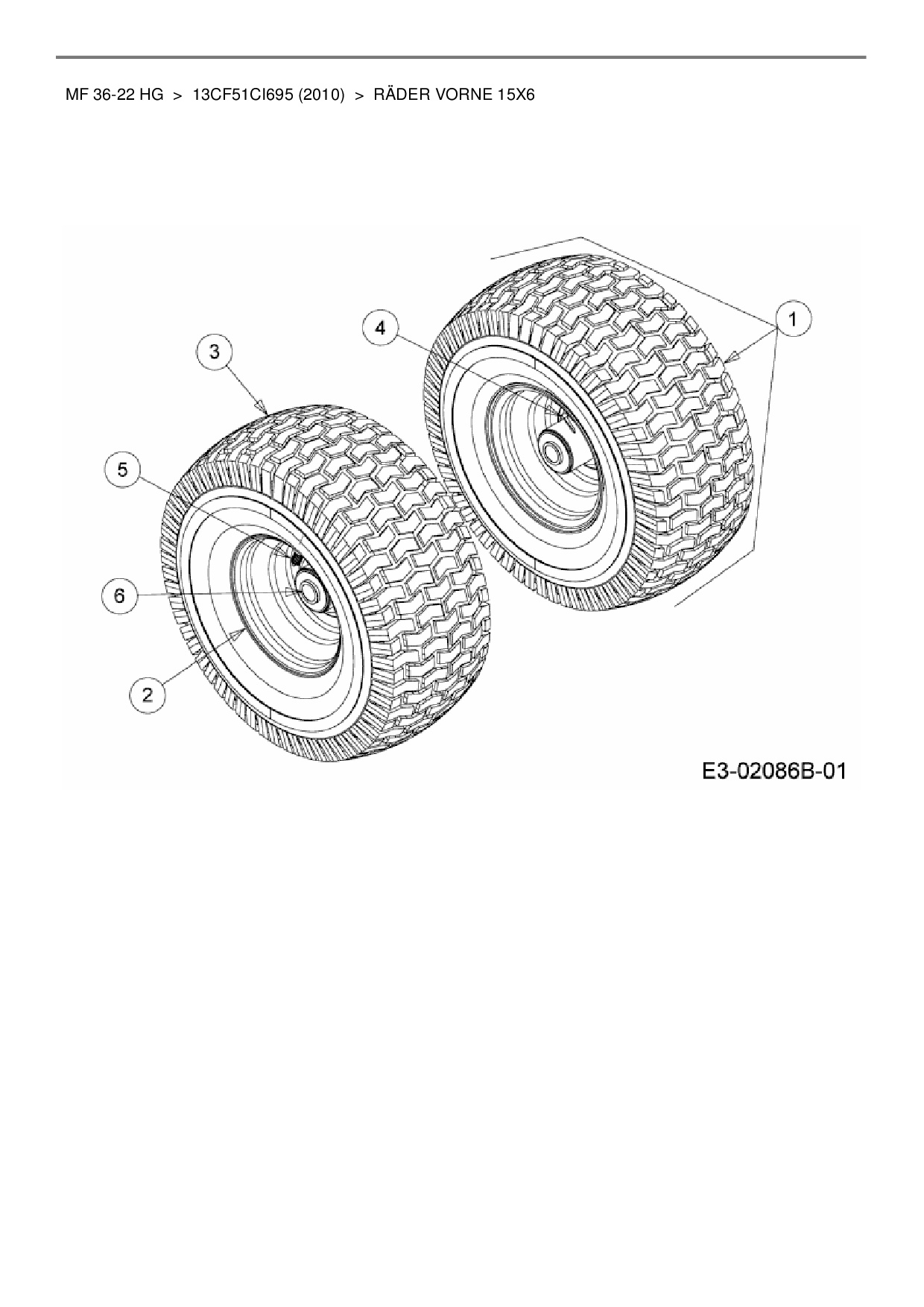 Ersatzteile für Rasentraktor Massey Ferguson MF 36-22 HG aus der Zeichnung Räder vorne 15x6: