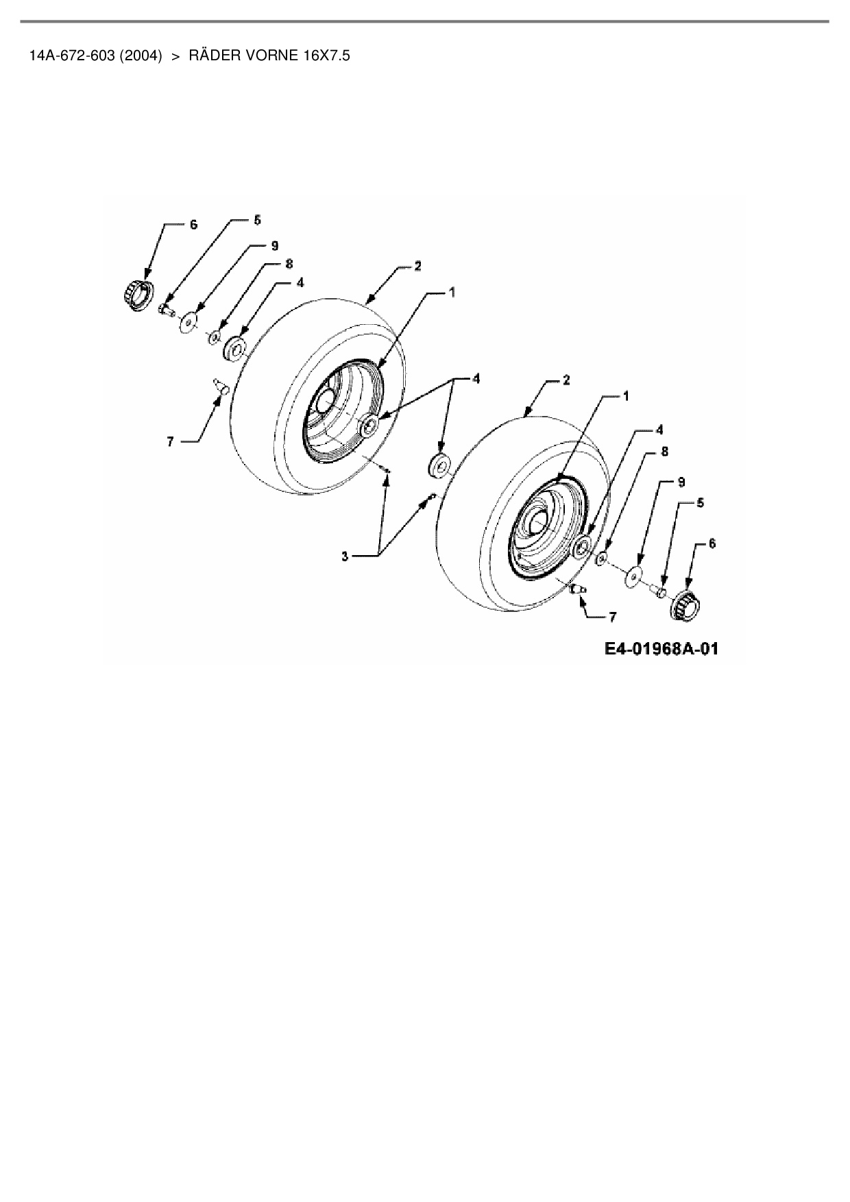 Ersatzteile für Gartentraktor Cub Cadet HDS 3235 aus der Zeichnung Räder vorne 16x7.5: