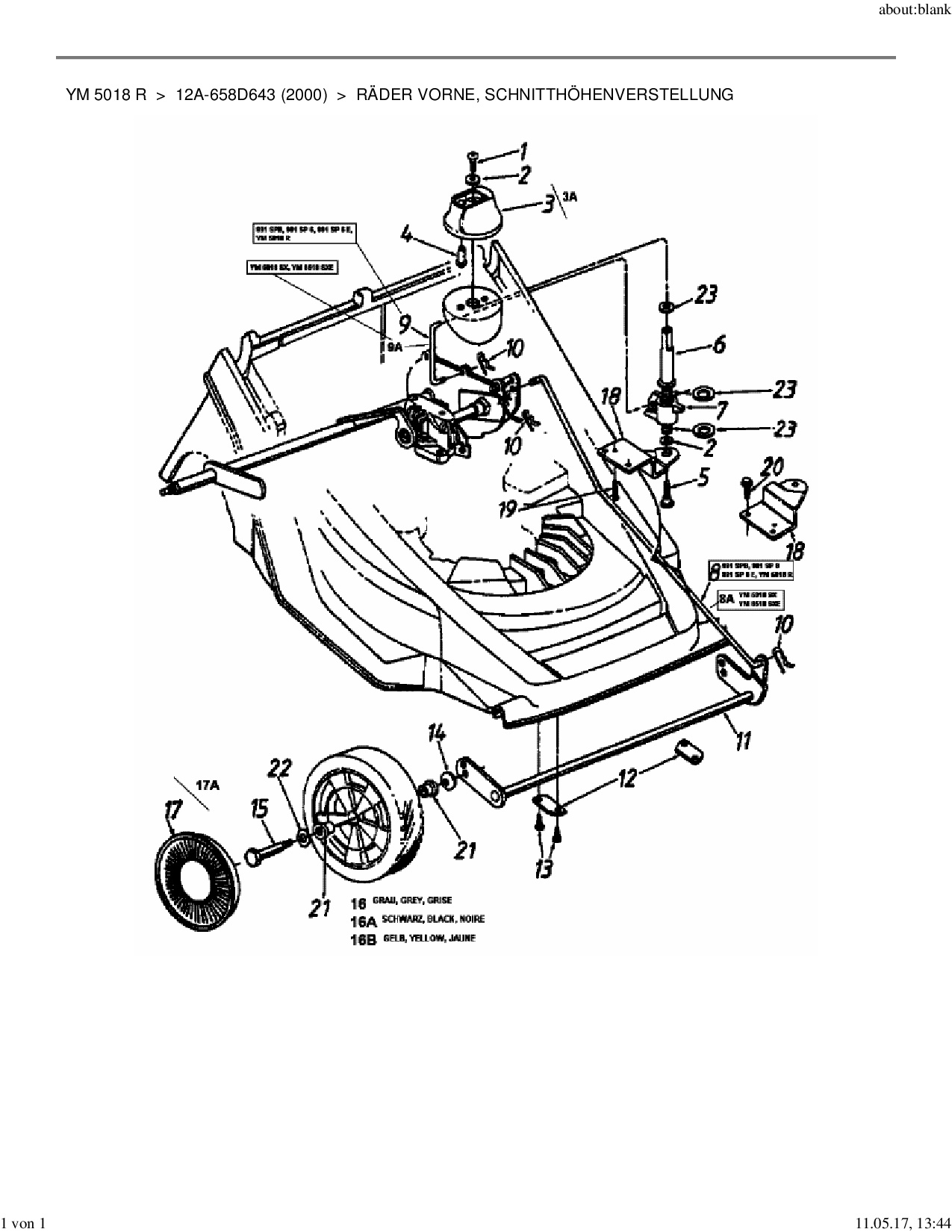Ersatzteile für Motormäher mit Antrieb Yard-Man YM 5018 R aus der Zeichnung Räder vorne, Schnitthöhenverstellung: