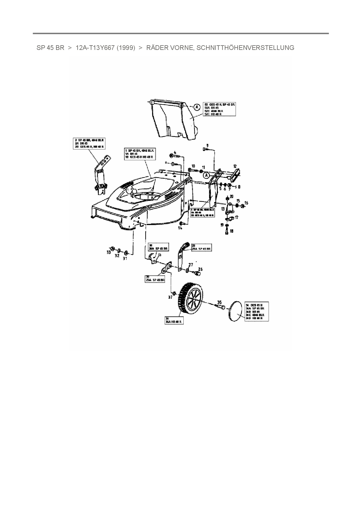 Zeichnung für Stinnes Pro Motormäher mit Antrieb SP 45 BR mit der Geräte-Artikelnr. 12A-T13Y667 ab Baujahr 1999: