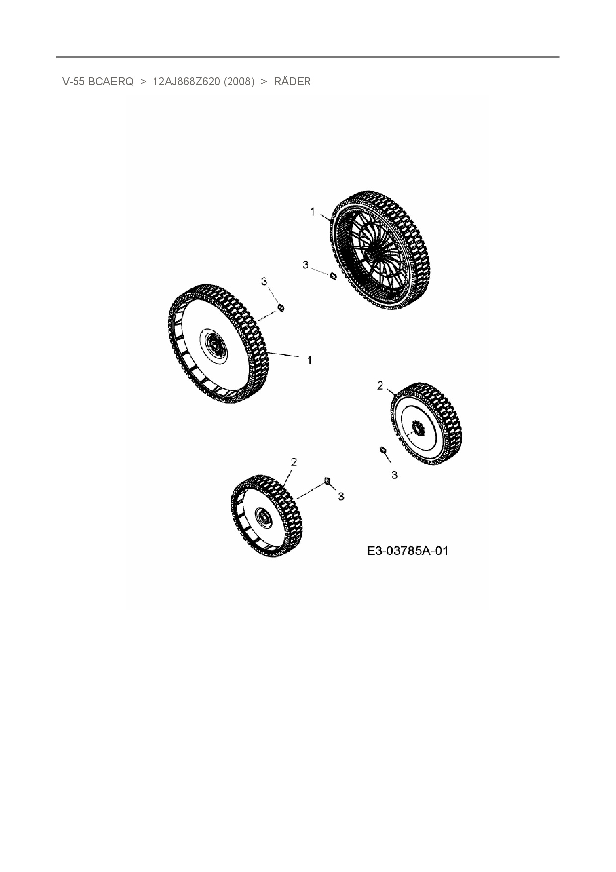 Ersatzteile für Motormäher mit Antrieb Variolux V-55 BCAERQ aus der Zeichnung Räder: