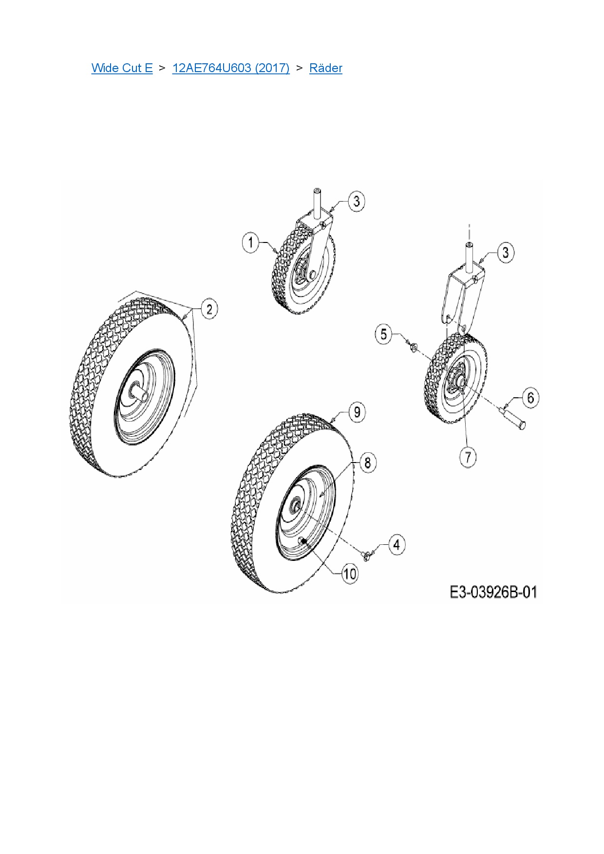 Ersatzteile für Motormäher mit Antrieb Cub Cadet Wide Cut E aus der Zeichnung Räder: