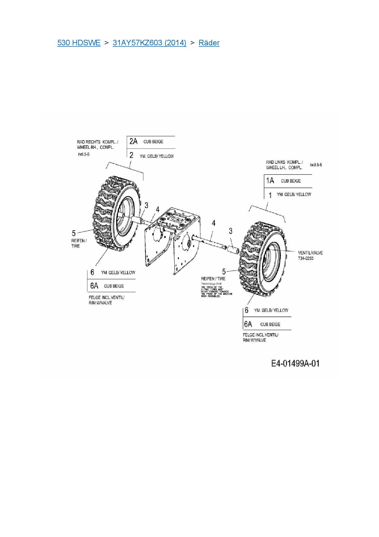 Ersatzteile für Schneefräse Cub Cadet 530 HDSWE aus der Zeichnung Räder:
